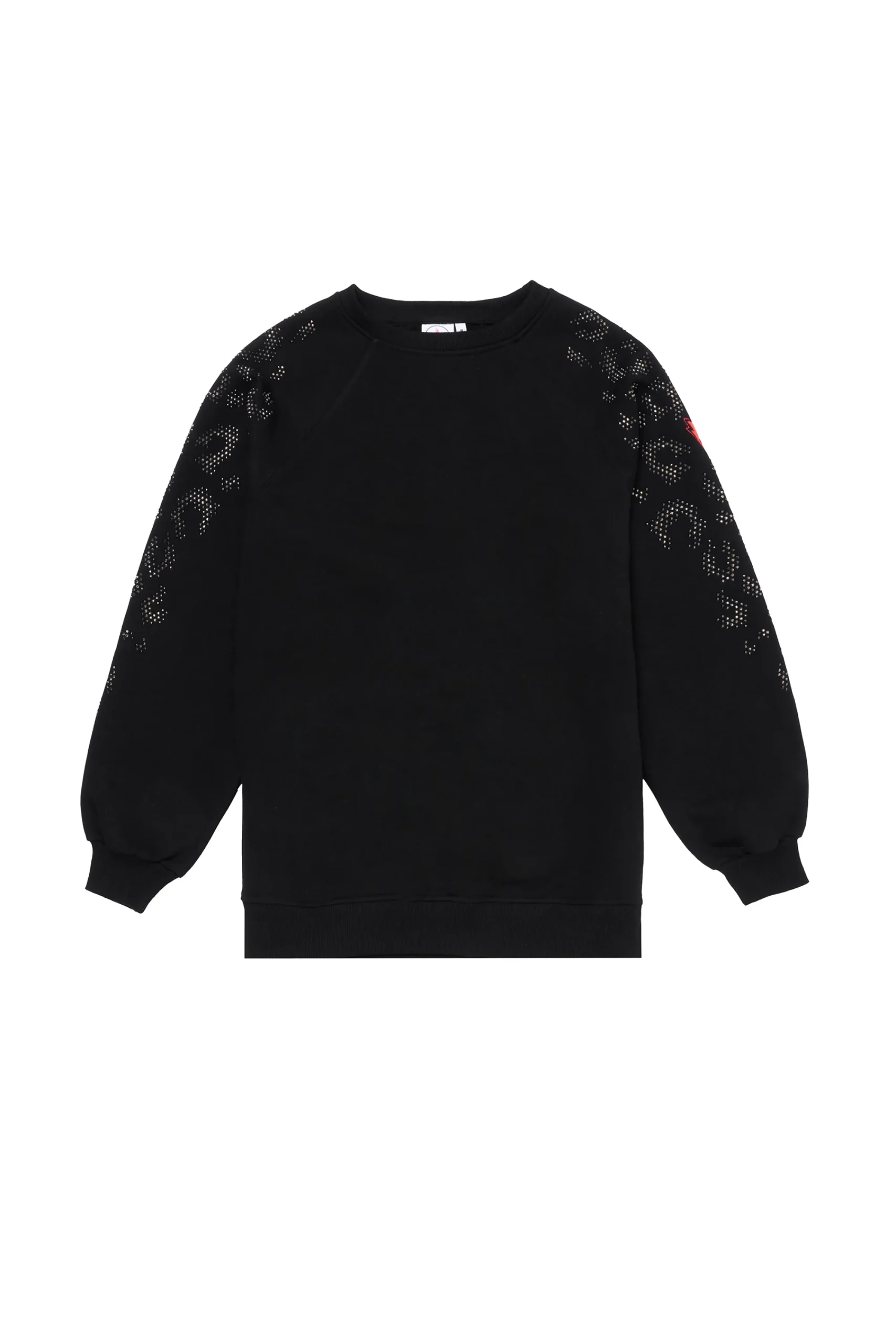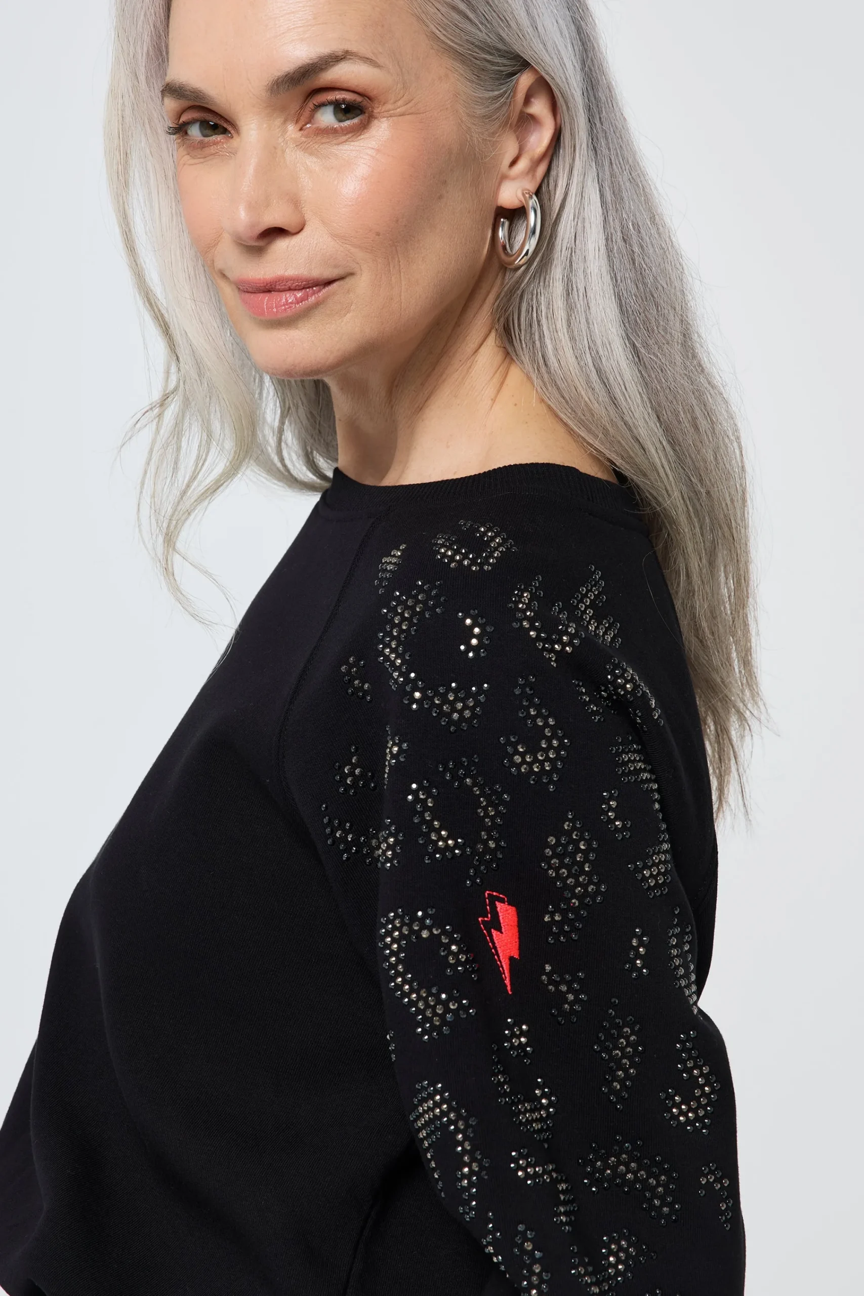 A feel-good essential designed for your everyday wardrobe. This black with studded leopard sweatshirt offers an extra roomy fit (great for layering in chilly weather) and features relaxed dropped shoulder seams. Crafted from ultra-soft, organic cotton blend, it’s as snug as your favourite duvet. Warning: you might not want to take it off…