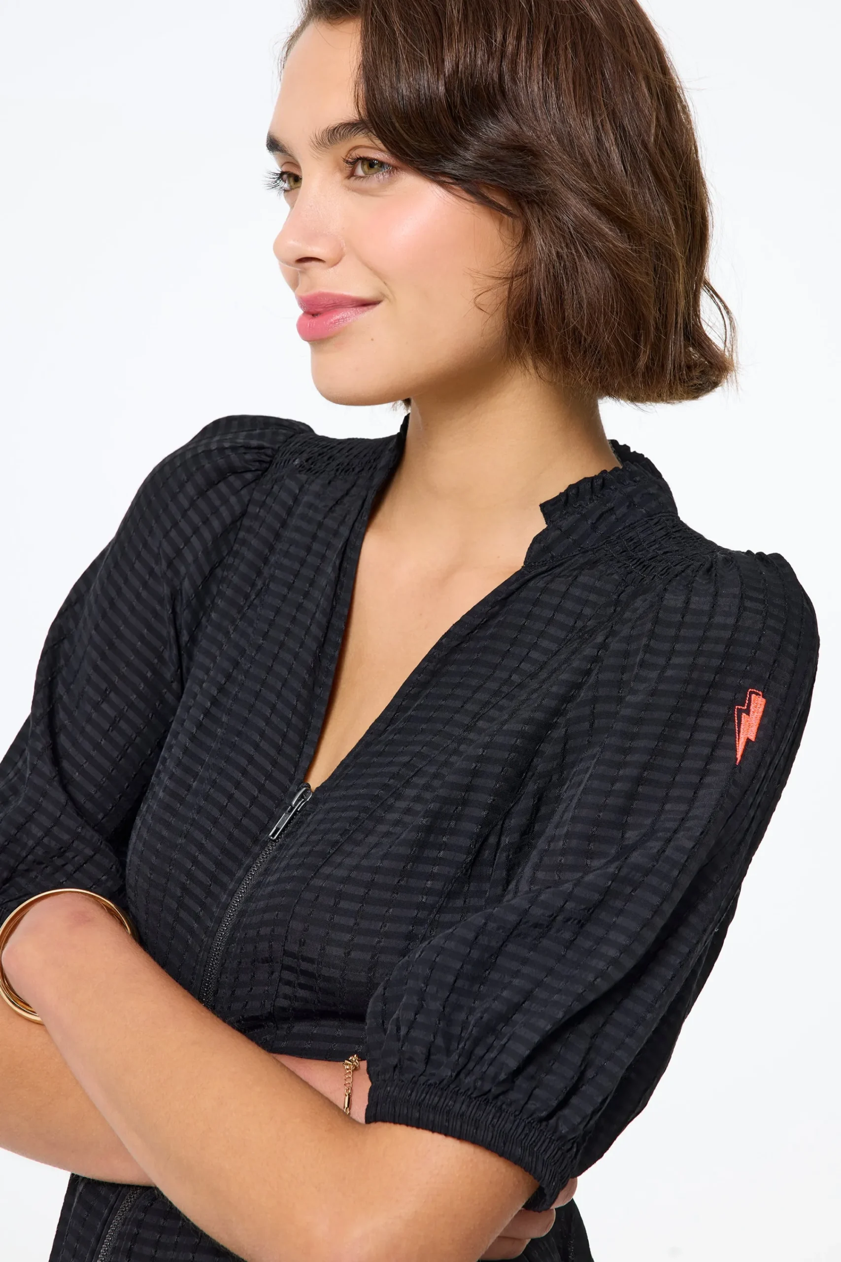 - Short blouson sleeves
