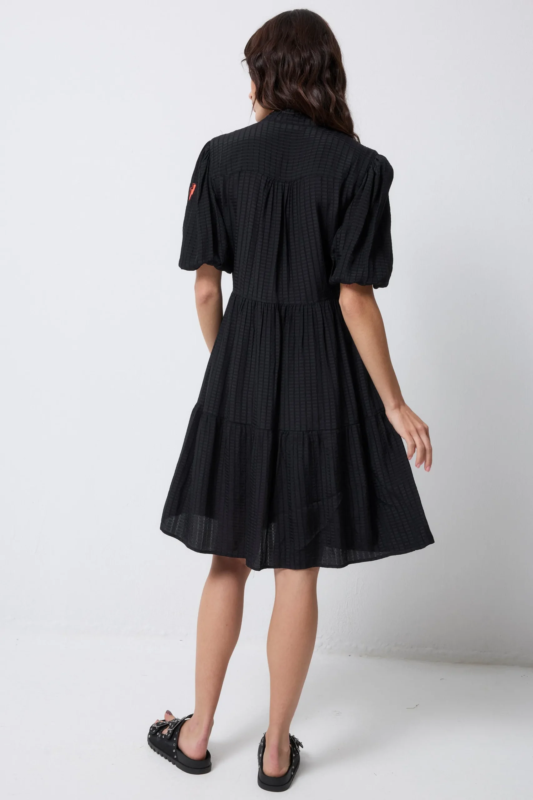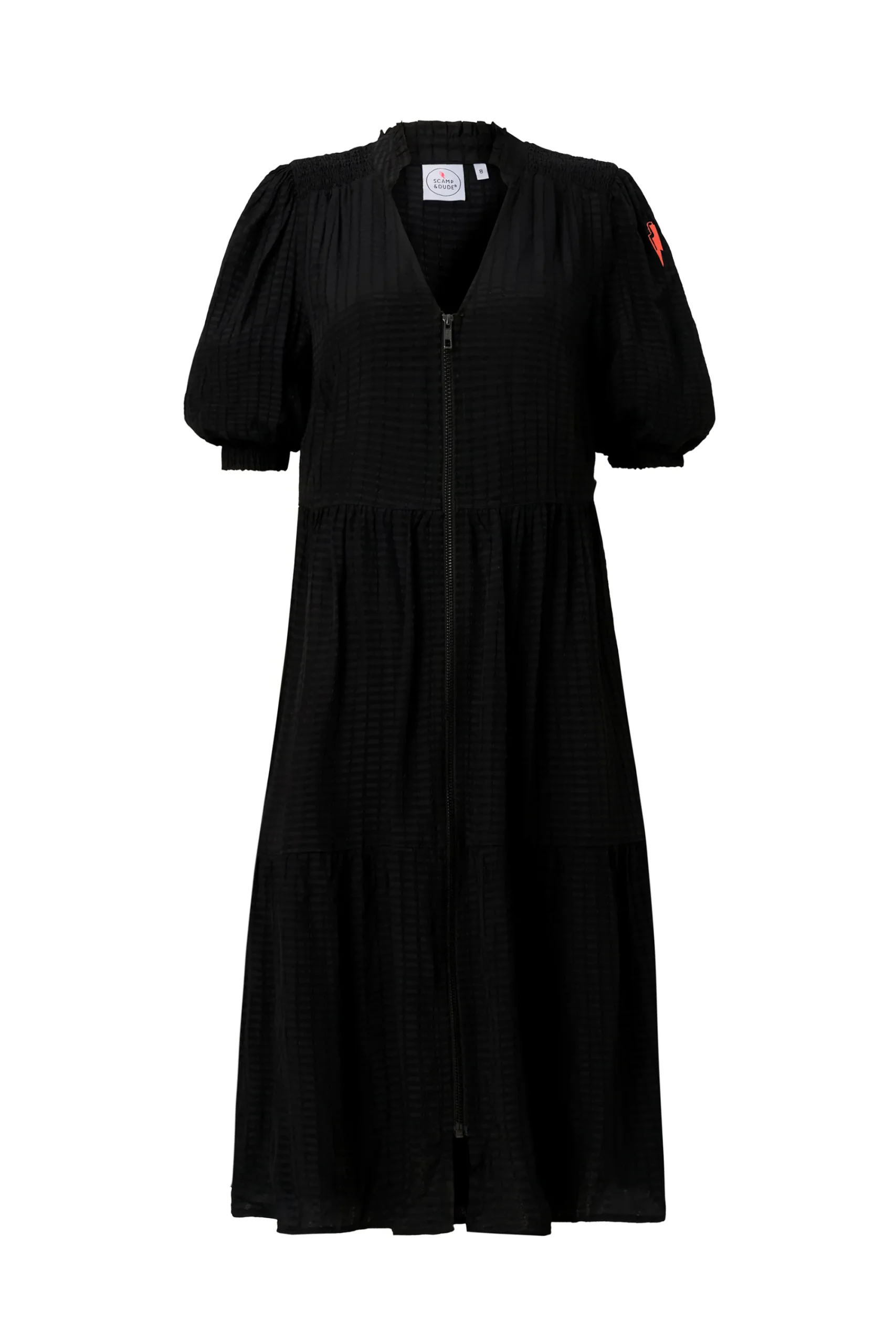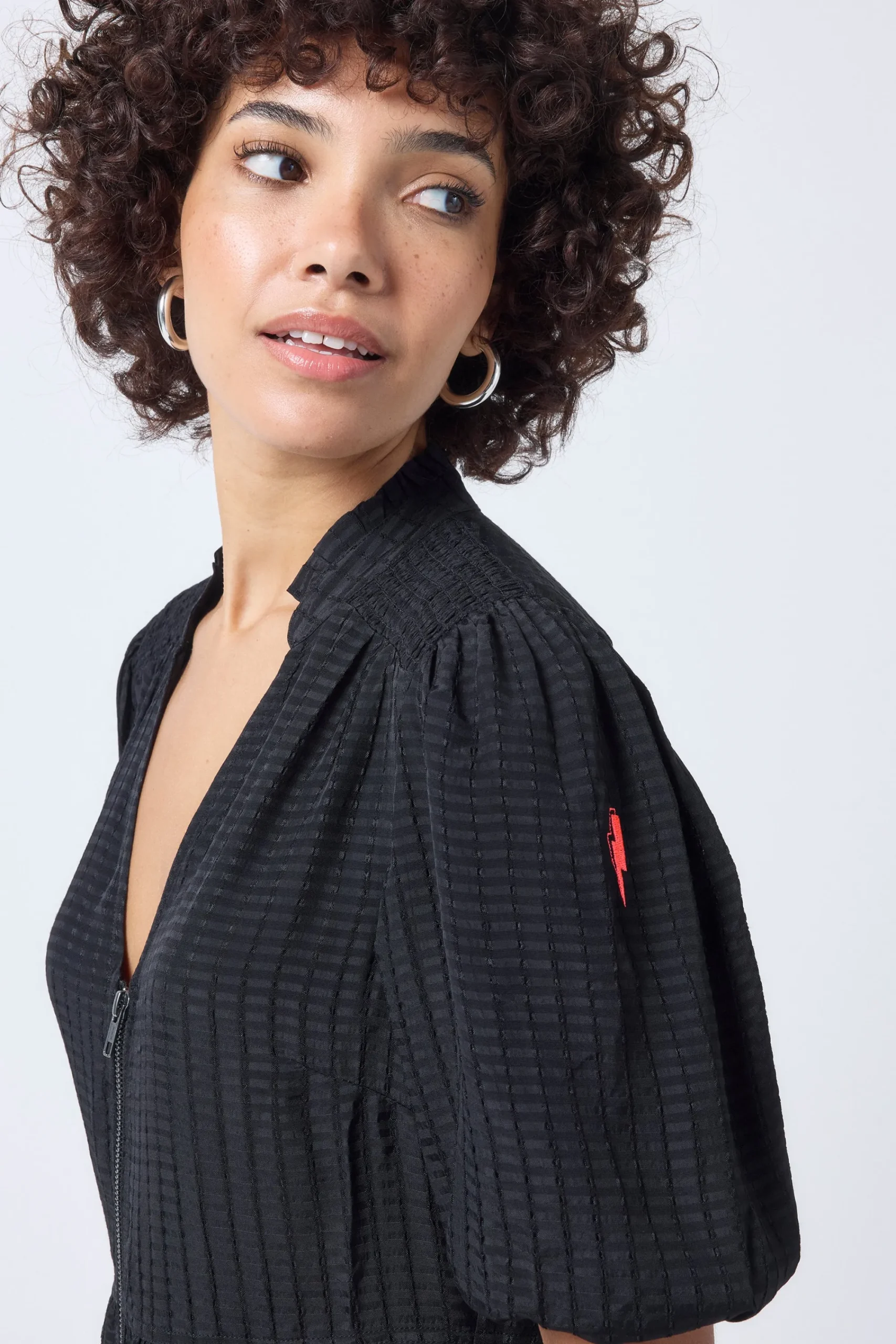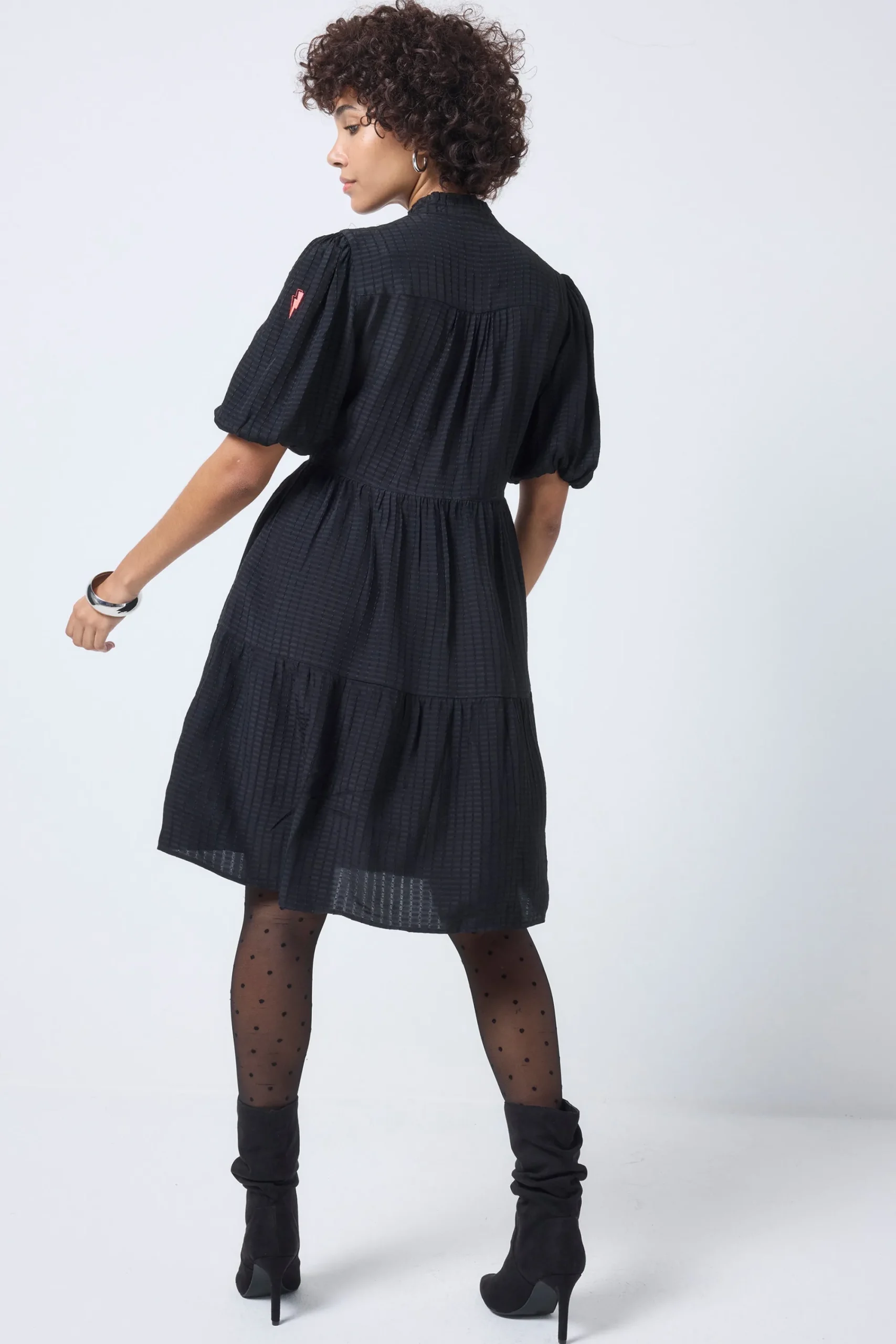 Crafted from soft viscose crepe this black zip detail tiered short dress is all about off-duty charm. It’s crafted with romantic short blouson sleeves, a smart v-neckline and a feature front zip fastening. For a flattering silhouette, the short length skirt fall in tiers in a flattering fit and flare style.