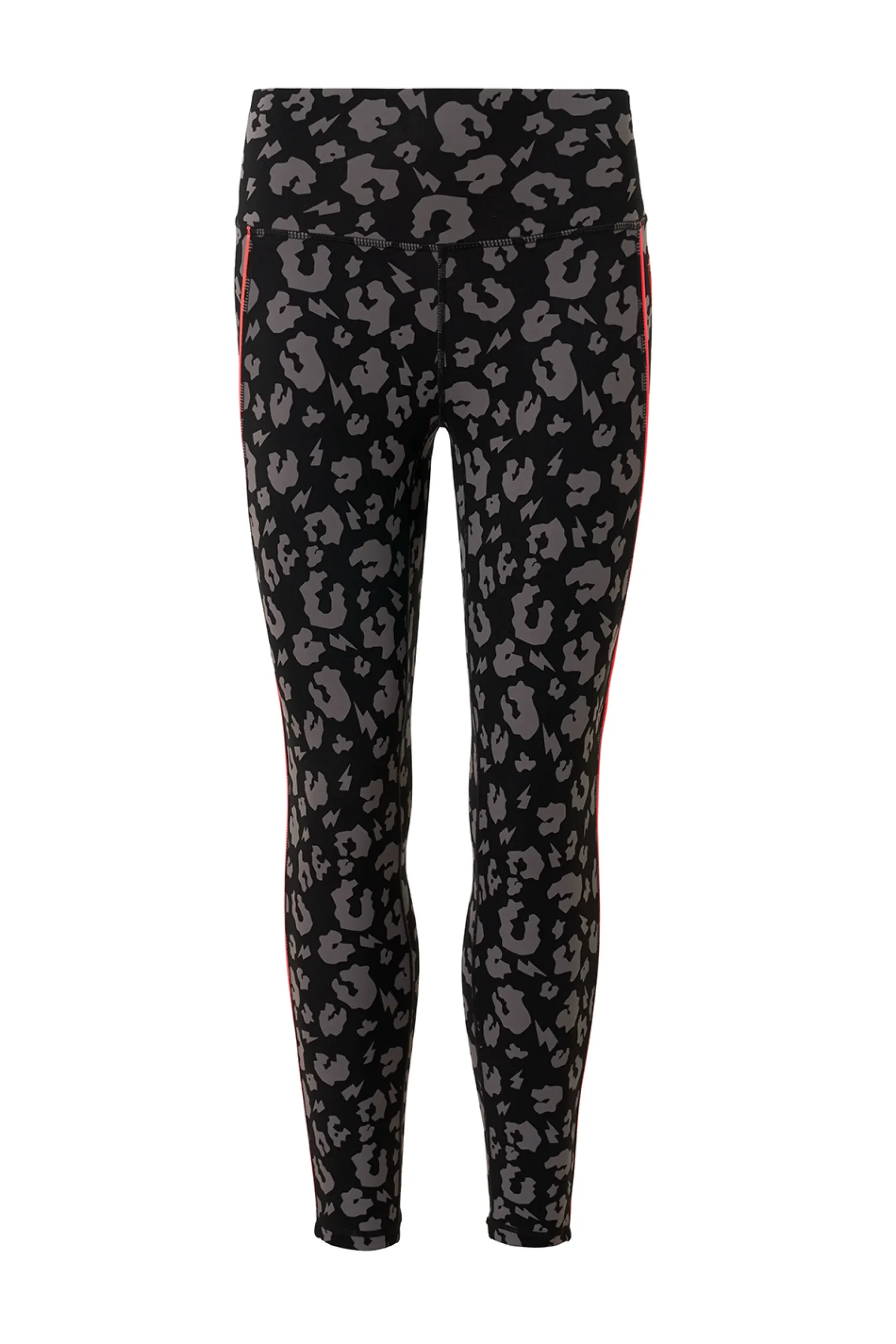 Go from studio to street in prints that perform. Our black with grey leopard and lightning bolt print gym leggings are designed with sculpting four-way stretch fabric and a flattering high-rise waistband. Crafted to cinch and lift in all the right places, these leggings are set to be the show-stopping heroes of your activewear wardrobe.