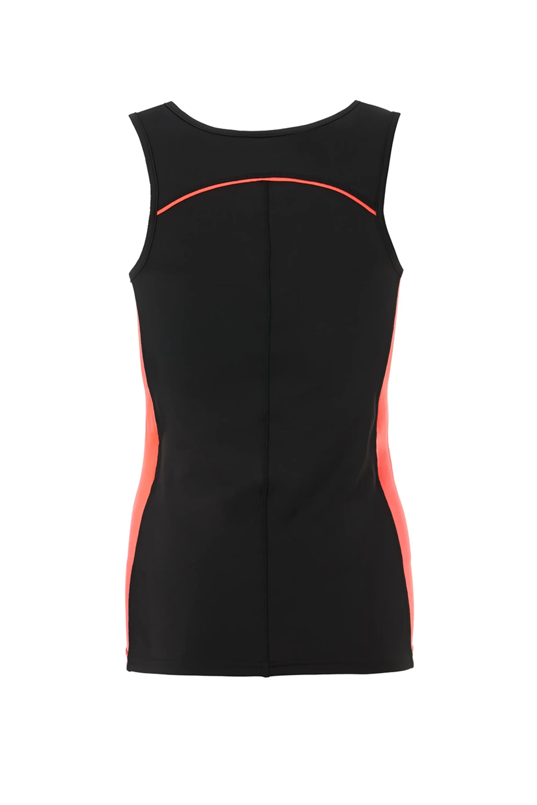 Step up your workout wardrobe with our black active vest, accented with vibrant neon coral. The comfortable, body-shapin…