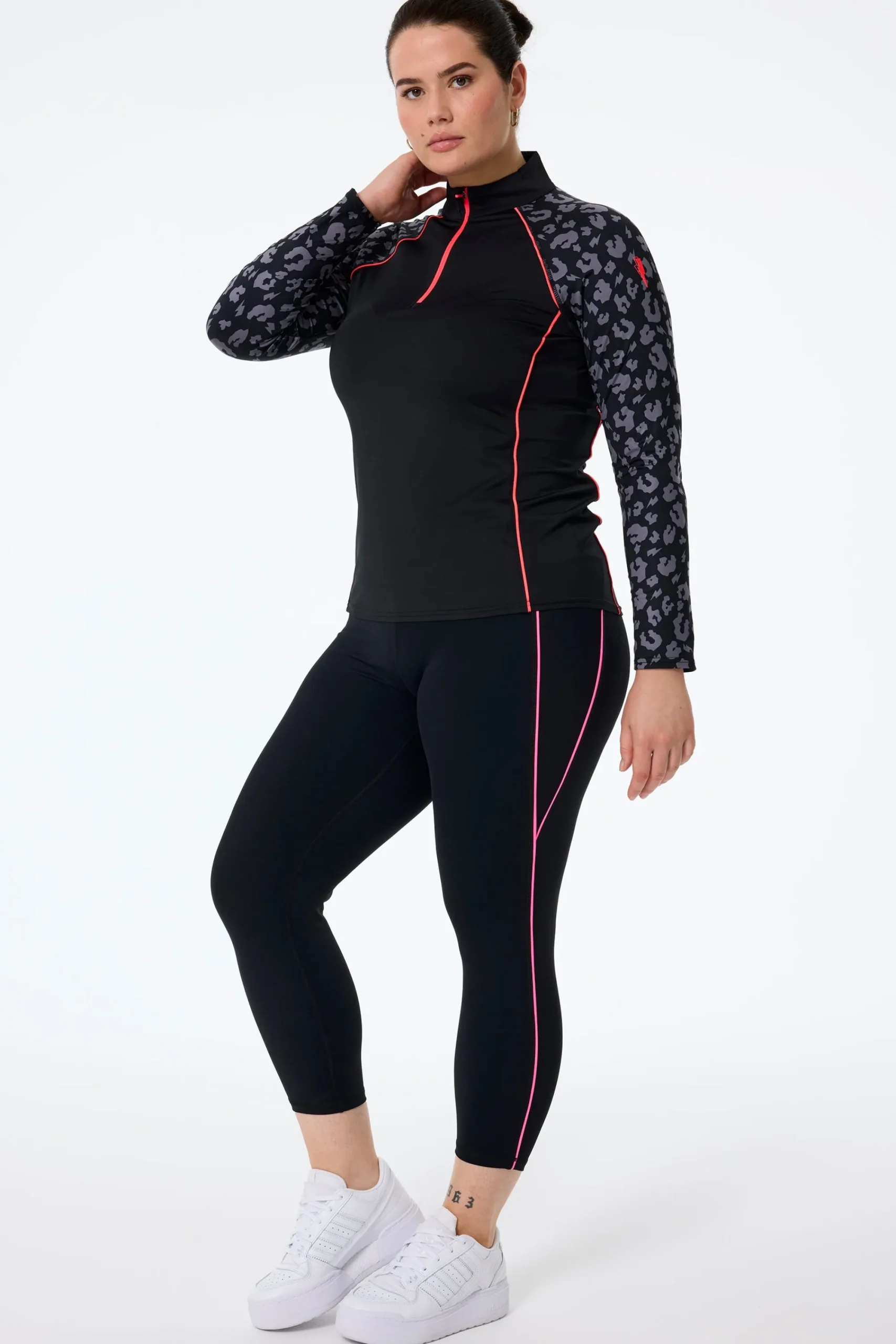 Go from studio to street in prints that perform. Our black with neon piping gym leggings are designed with sculpting four-way stretch fabric and a flattering high-rise waistband. Crafted to cinch and lift in all the right places, these leggings are set to be the show-stopping heroes of your activewear wardrobe.