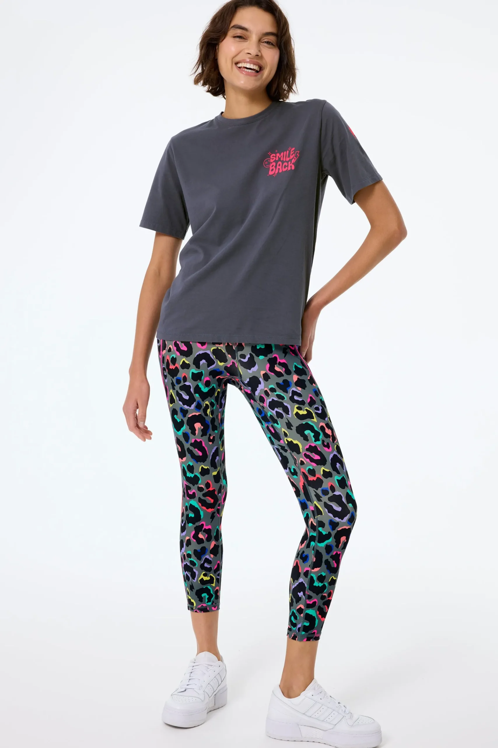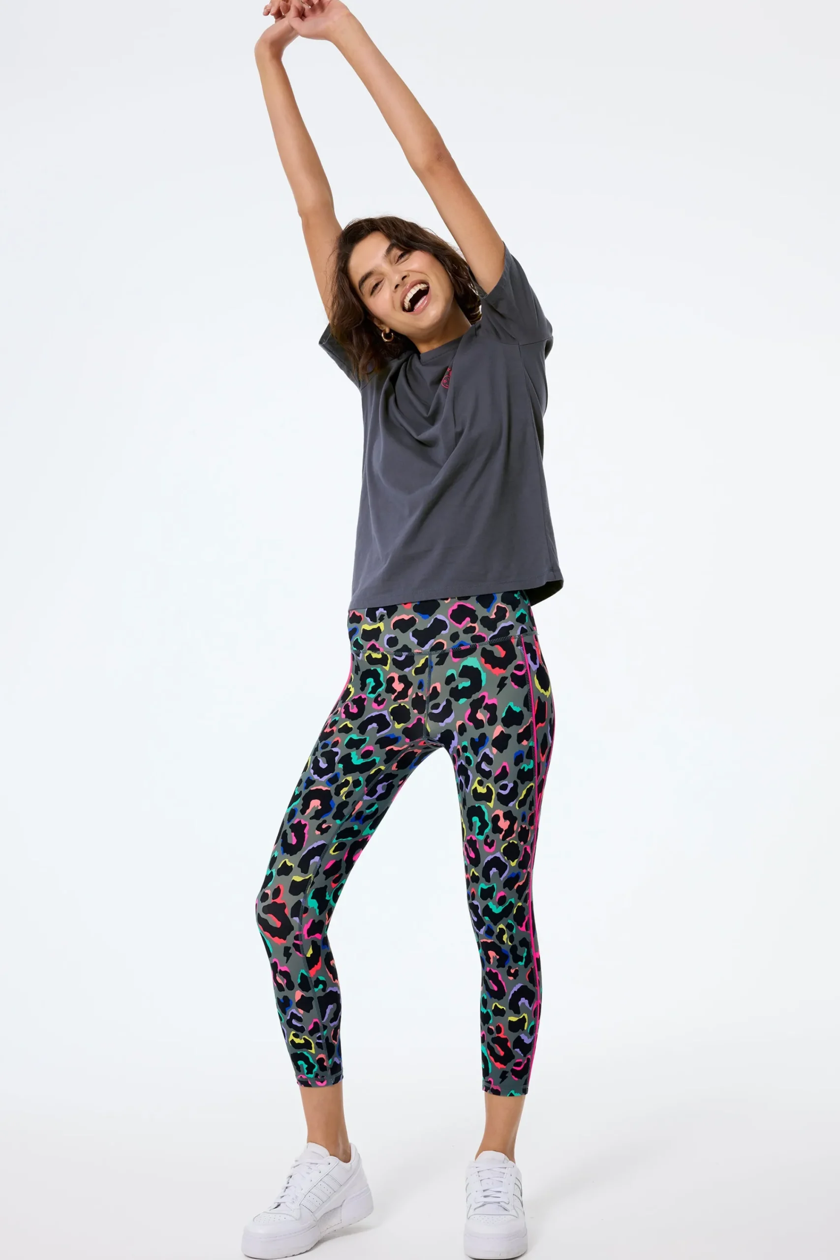 Go from studio to street in prints that perform. Our dark khaki with rainbow shadow leopard and lightning bolt print gym leggings are designed with sculpting four-way stretch fabric and a flattering high-rise waistband. Crafted to cinch and lift in all the right places, these leggings are set to be the show-stopping heroes of your activewear wardrobe.