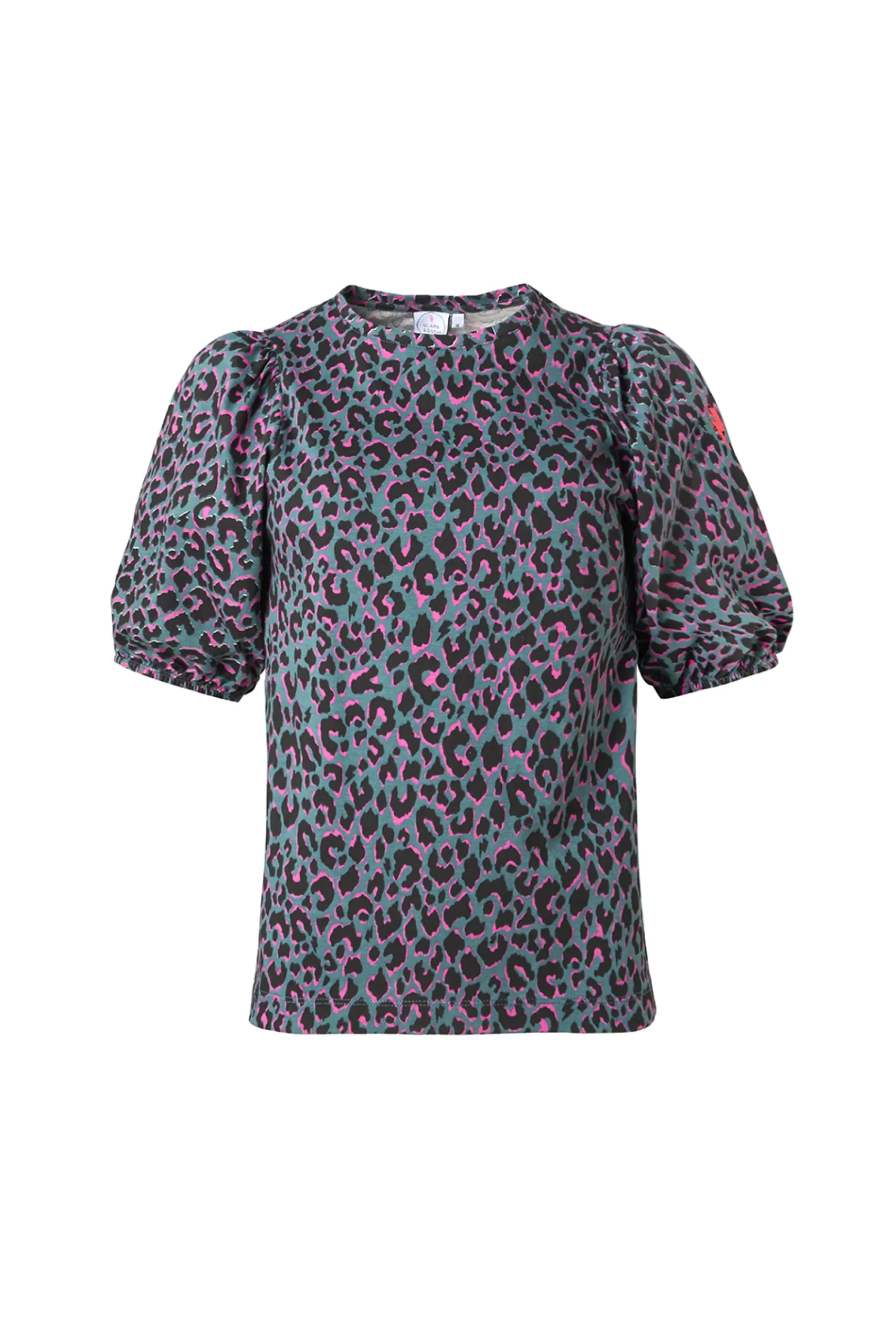 Perfect your casual style all year round with this green with pink and black shadow leopard and lightning bolt puff sleeve T-shirt. Finished with a crew-neckline and feminine puff sleeves with an elasticated cuff, this comfortable piece will be the perfect addition to your wardrobe. Complement yours with jeans and your favourite jacket for an effortlessly chic daytime look.