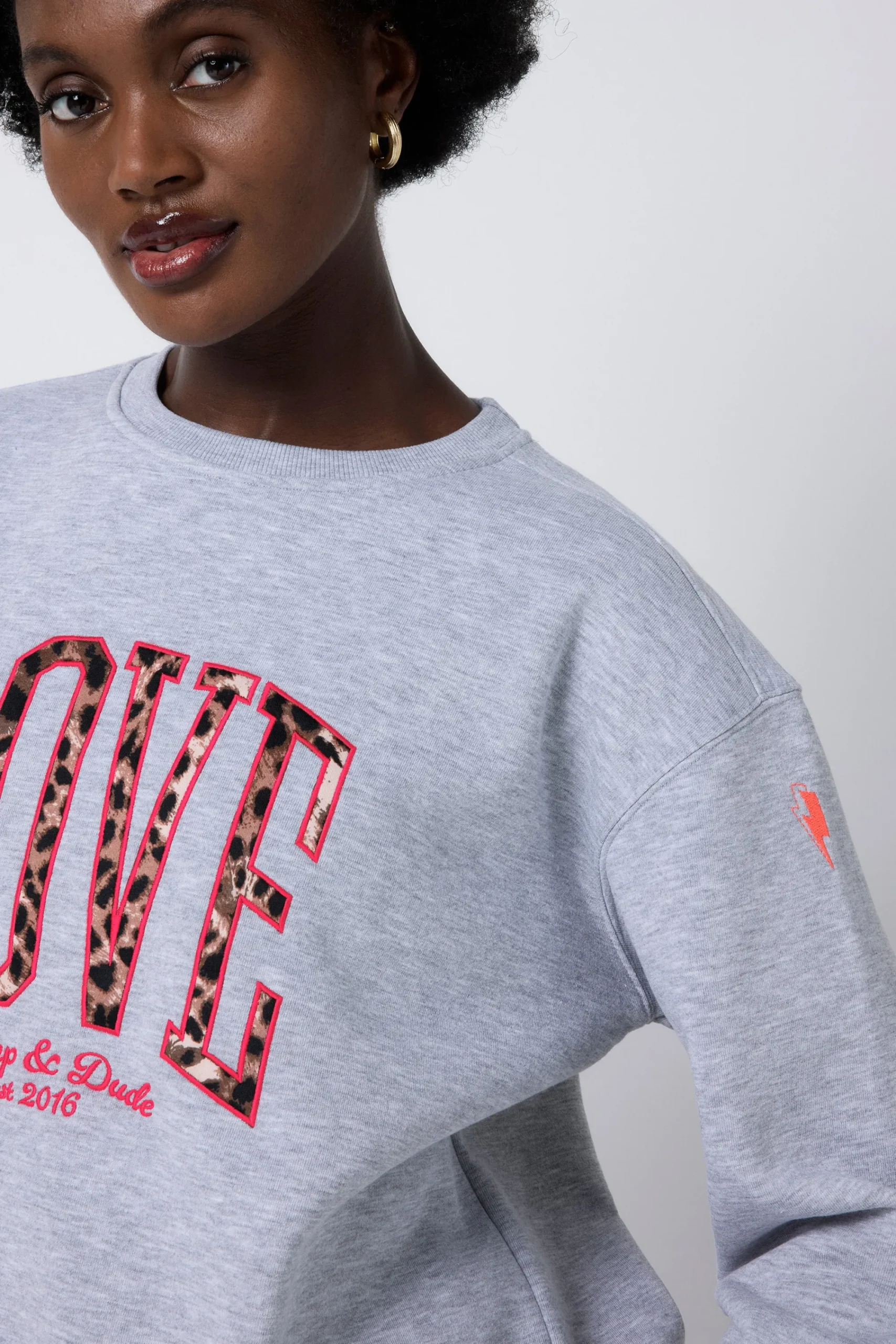 Our grey love cheetah oversized sweatshirt will slot seamlessly into your everyday staples. Featuring an applique graphic print on the front for an eye-catching look, this oversized sweatshirt will keep you looking cool from this season to the next.