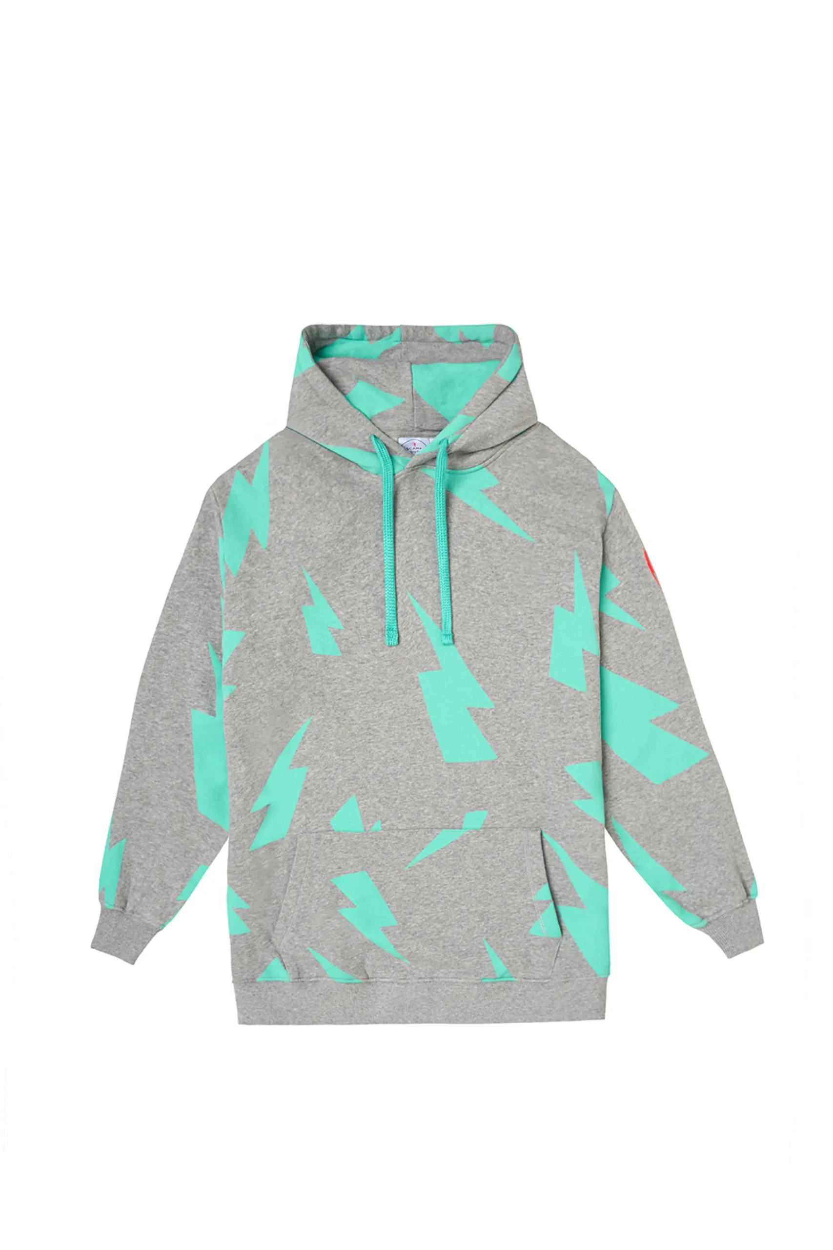 This grey marl with turquoise mega lightning bolt longline hoodie is perfect paired with jeans or leggings, to the park or out for food with friends. Made from super soft, 100% organic cotton to keep you warm and cosy through this season and beyond. The long-length relaxed fit is perfect for whenever you want to feel really comfortable.