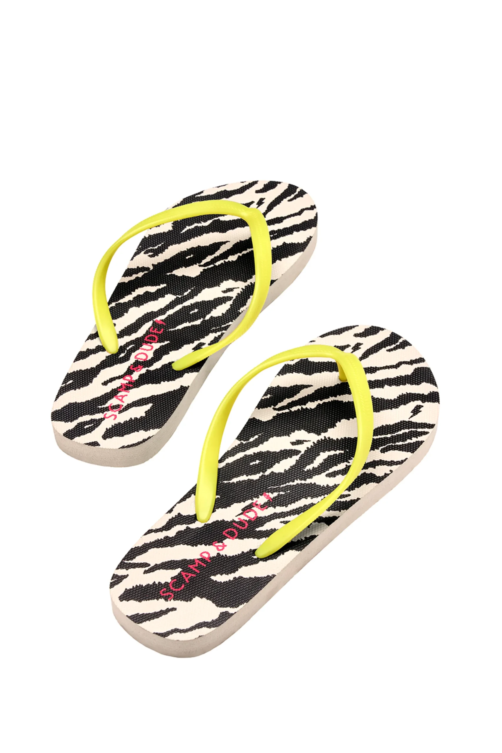 Whether you’re at the beach, by the pool or at home, step into summer with our ivory flip flops with black shadow tiger print. Wear with your favourite Scamp & Dude prints for a head-to-toe warm weather look.