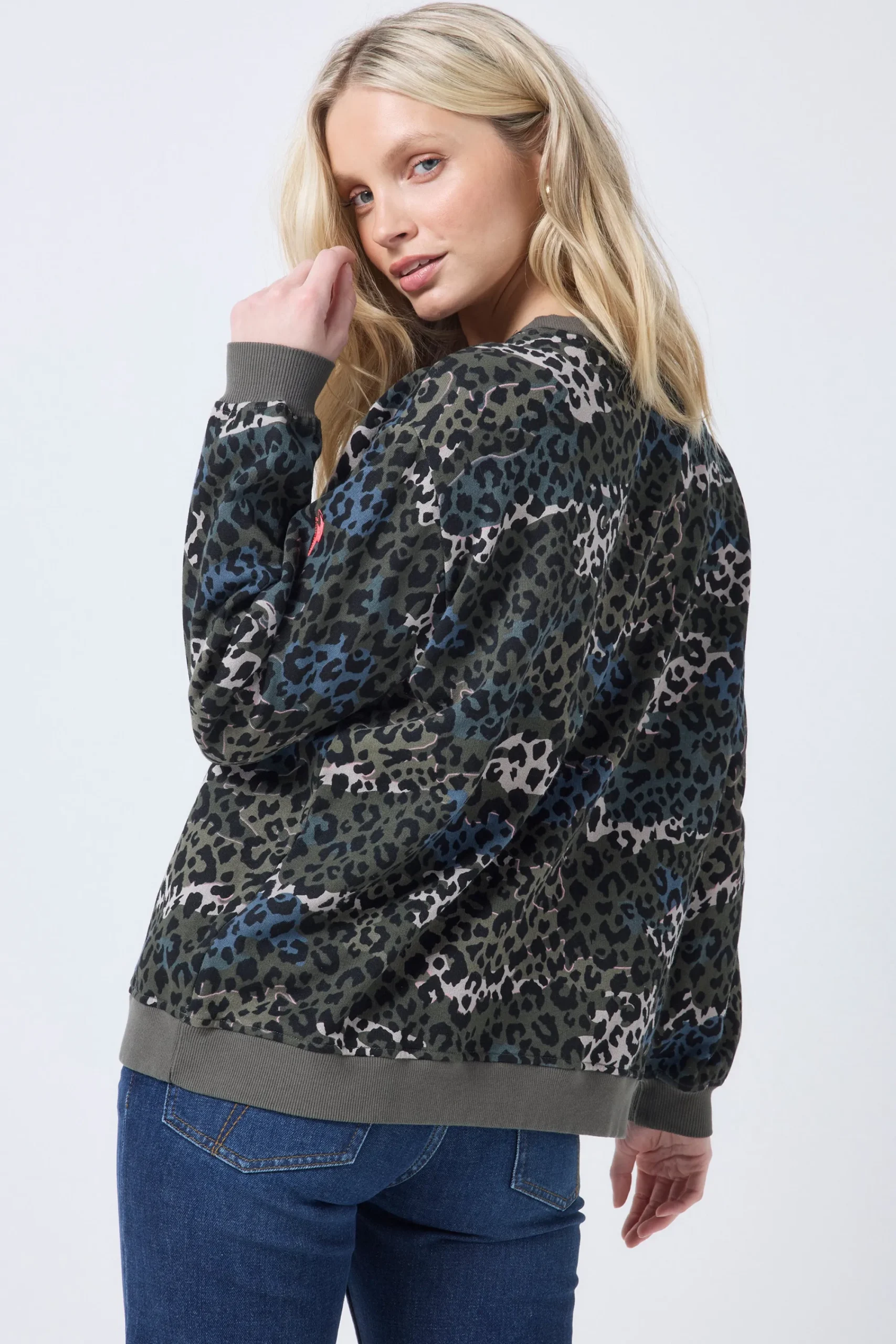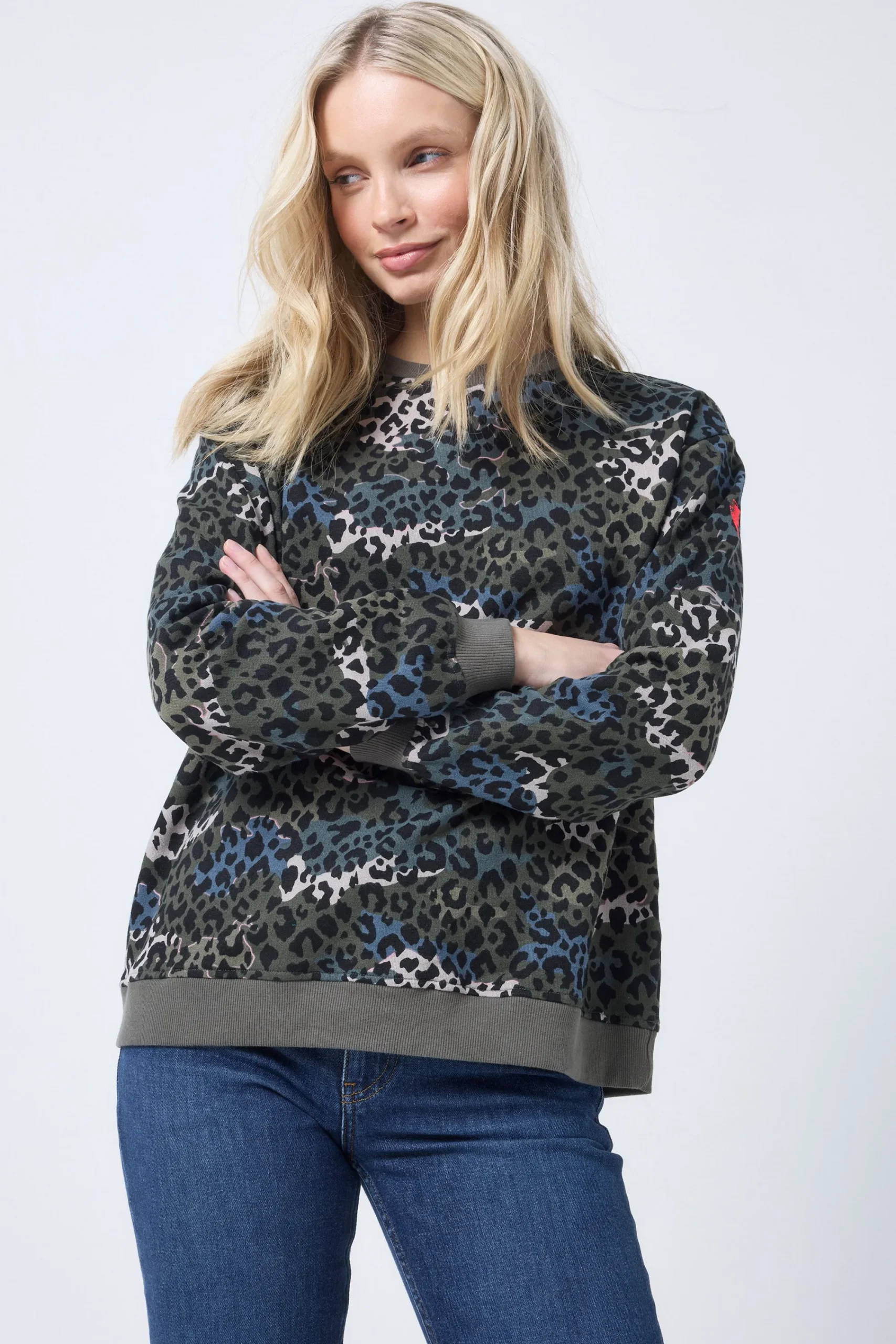 Amp up your casual collection with this khaki with green wild camo leopard and lightning bolt print oversized sweatshirt. It’s oversized fit makes it easy to layer, while dropped shoulder seams add to the relaxed feel. The eye-catching design is bound to draw attention wherever you go.