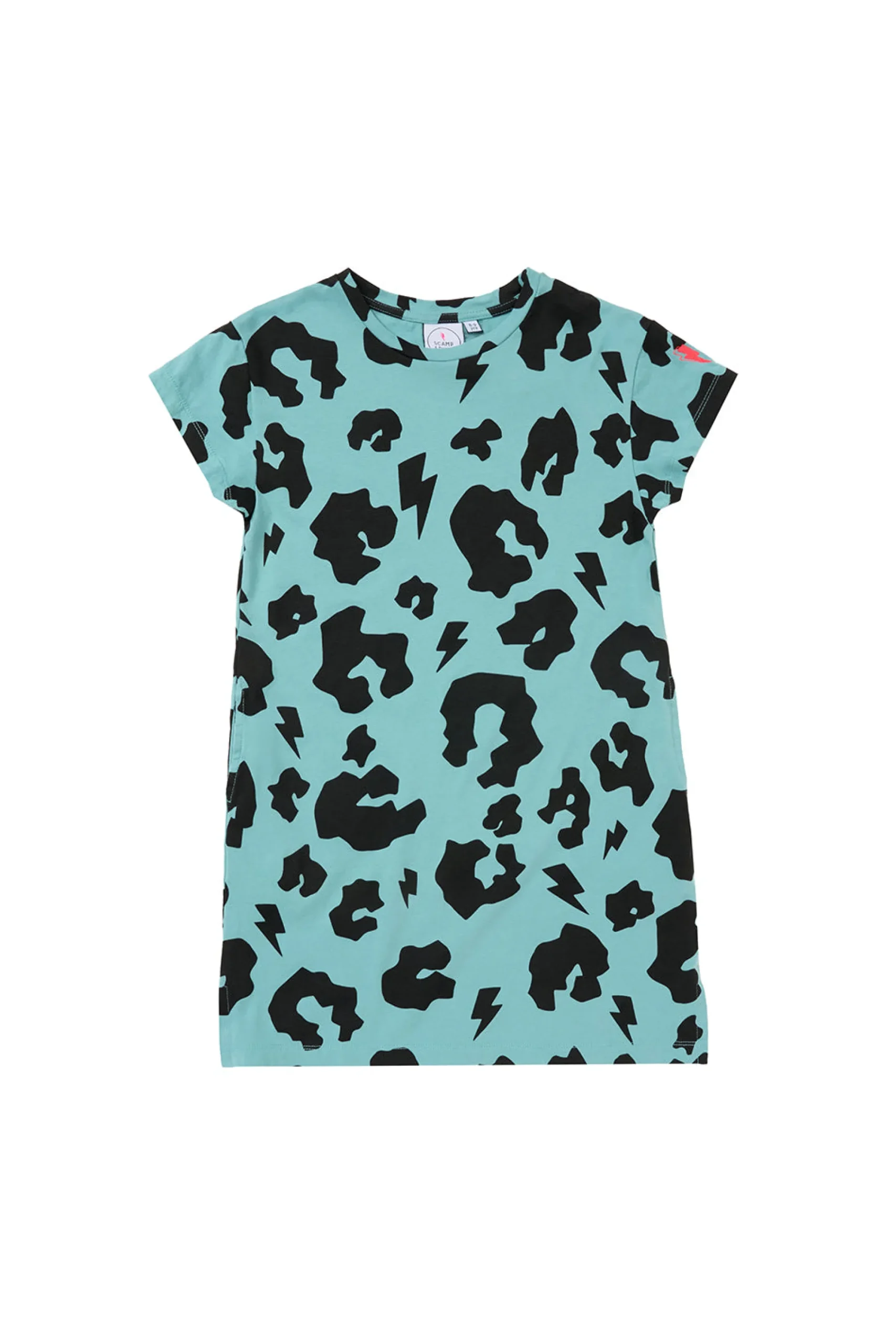 This khaki with black leopard and lightning bolt T-shirt dress is the perfect effortless yet put together look for your little one.