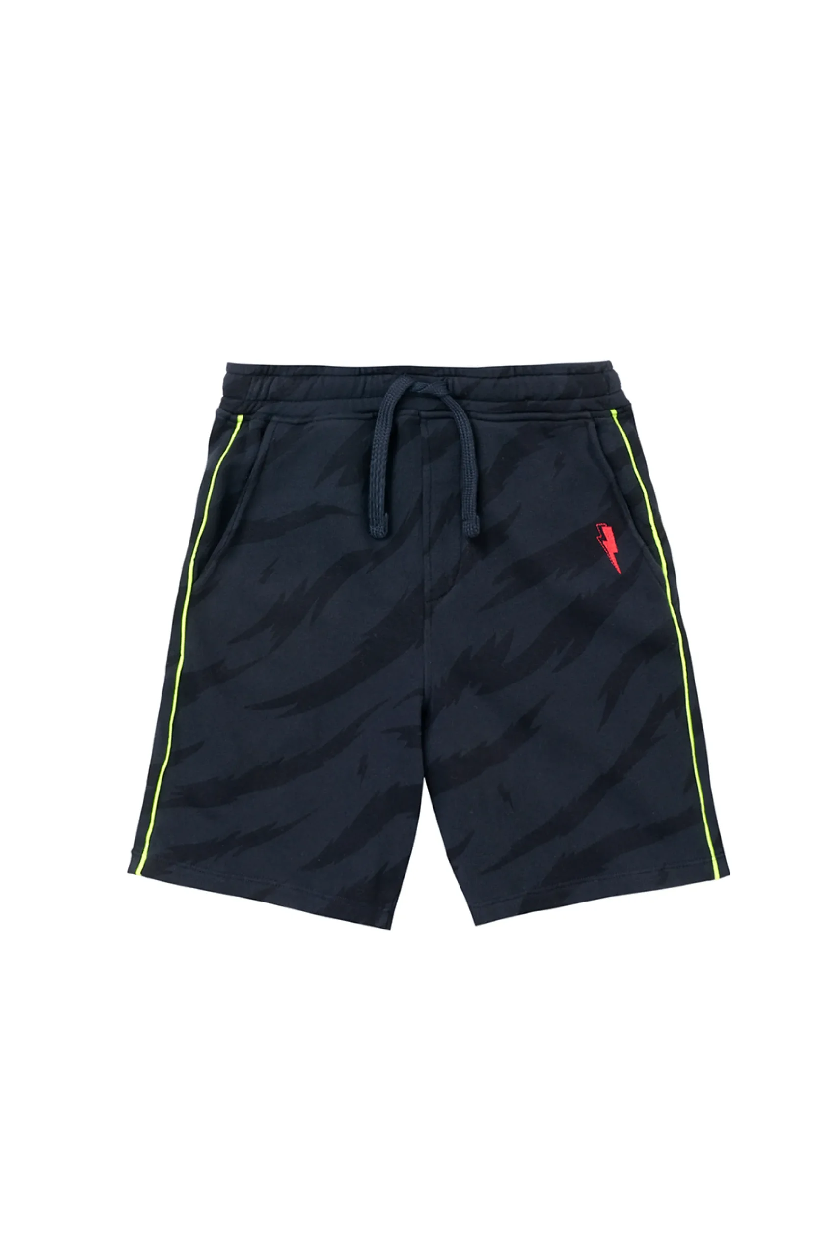 Summer holiday adventures are made easy with our kids navy with black graphic tiger print longer length shorts. Made from super soft, organic cotton, they are lightweight and comfortable, perfect for days outdoors. Complete their look in the warmer months with a T-shirt or a sweatshirt on cooler days.
