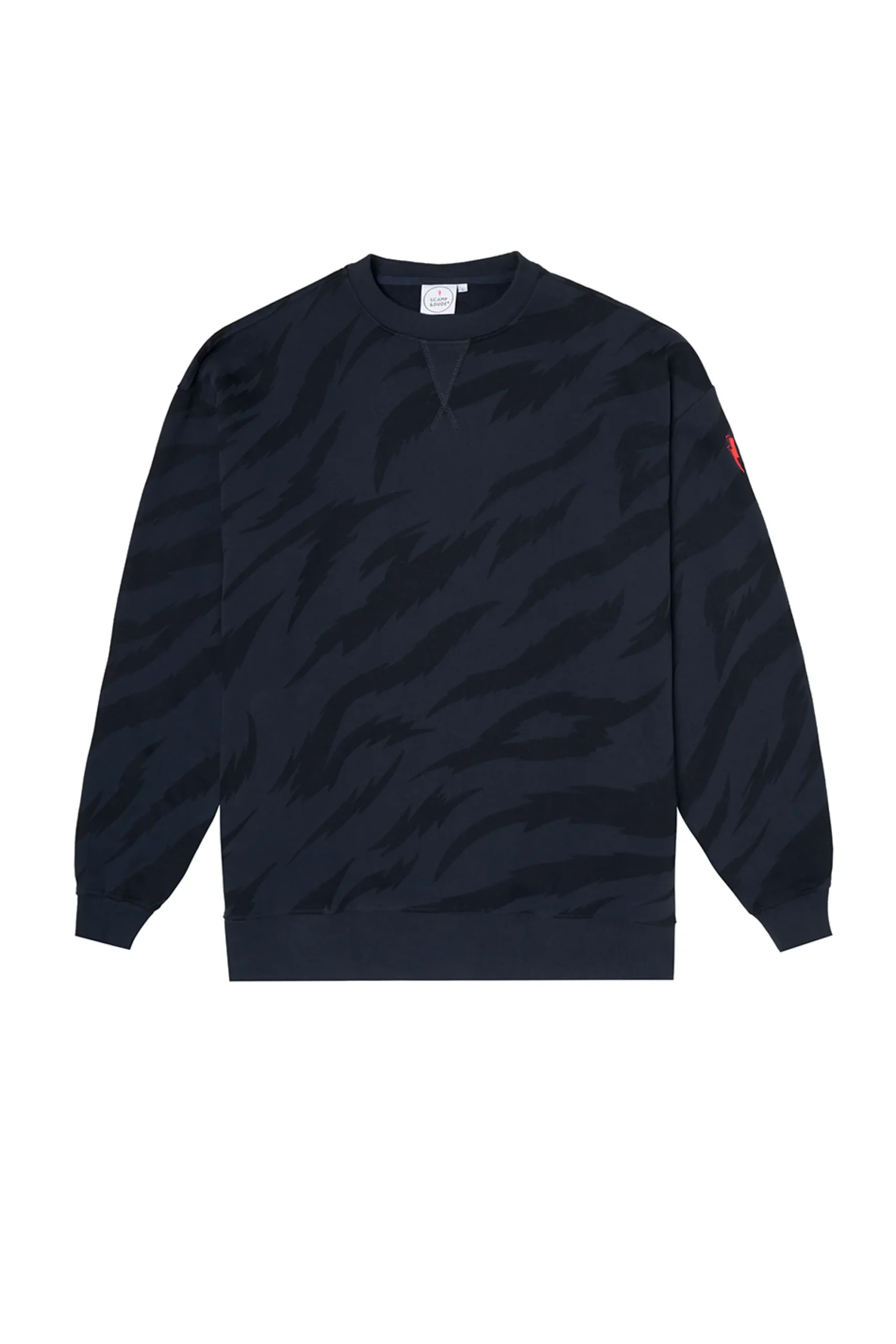 An indispensable wardrobe staple that’s sure to stand the test of time, this men’s navy with black tiger and lightning bolt print sweatshirt makes everyday layering simple. Cool, comfy, casual, it’s everything you could want from a weekend staple.