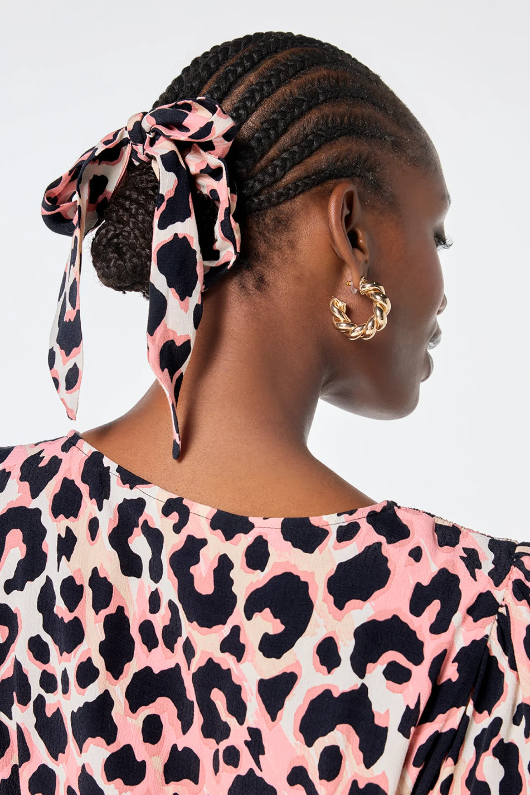 - Mixed neutral bow scrunchie with black shadow leopard & lightning bolt print