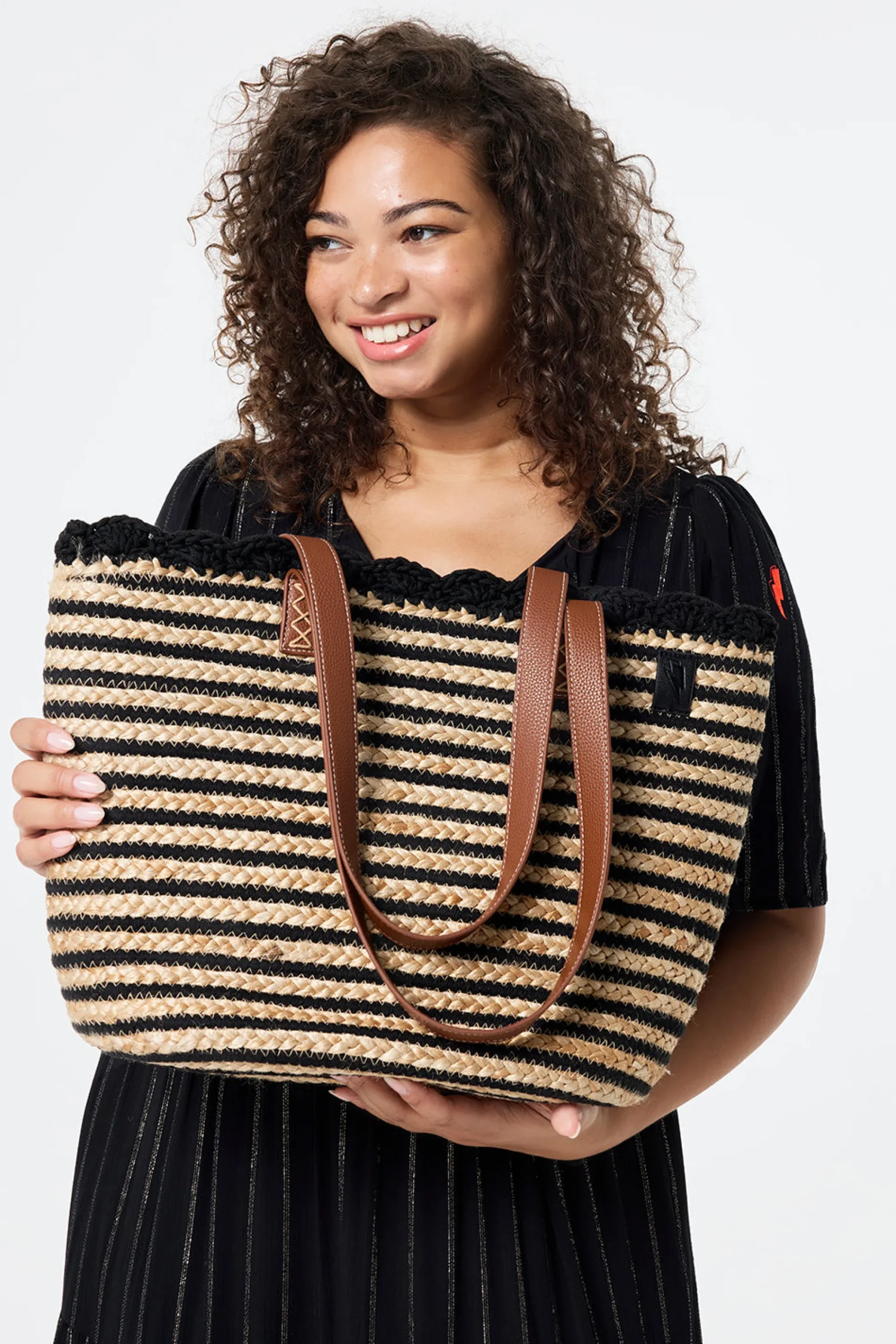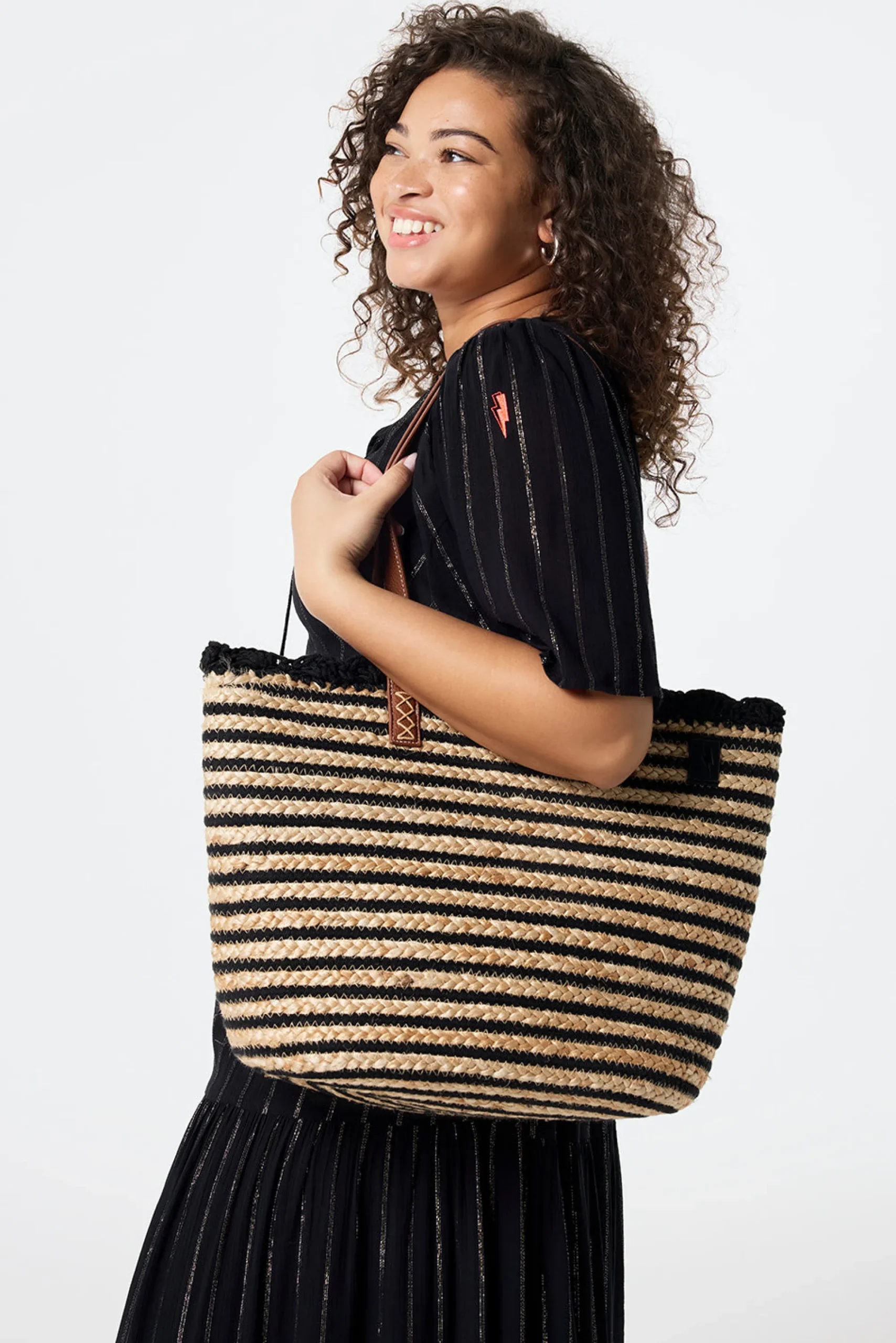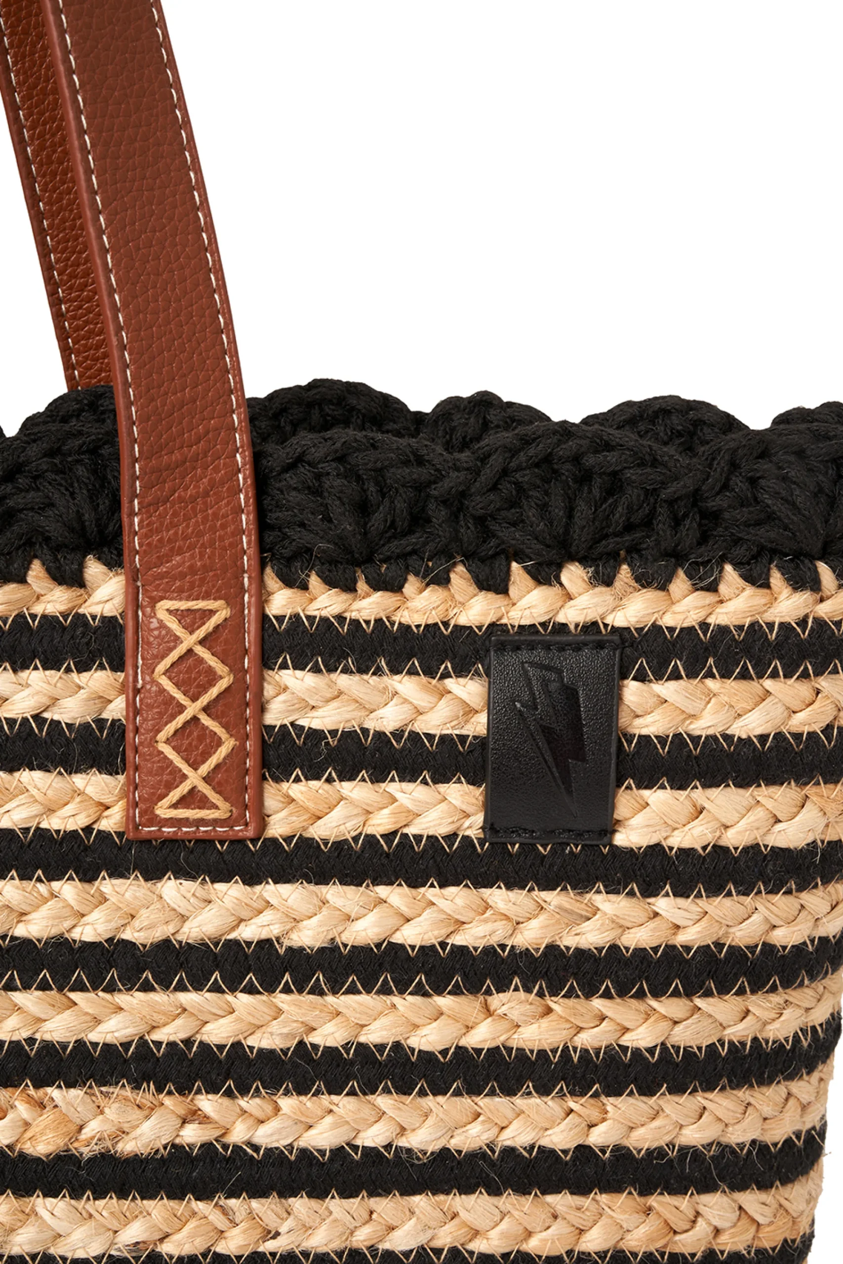 Get a handle on our striped straw bag. Perfect for brunch dates or beach days, the roomy interior is ready to hold everything from sunscreen to snacks.