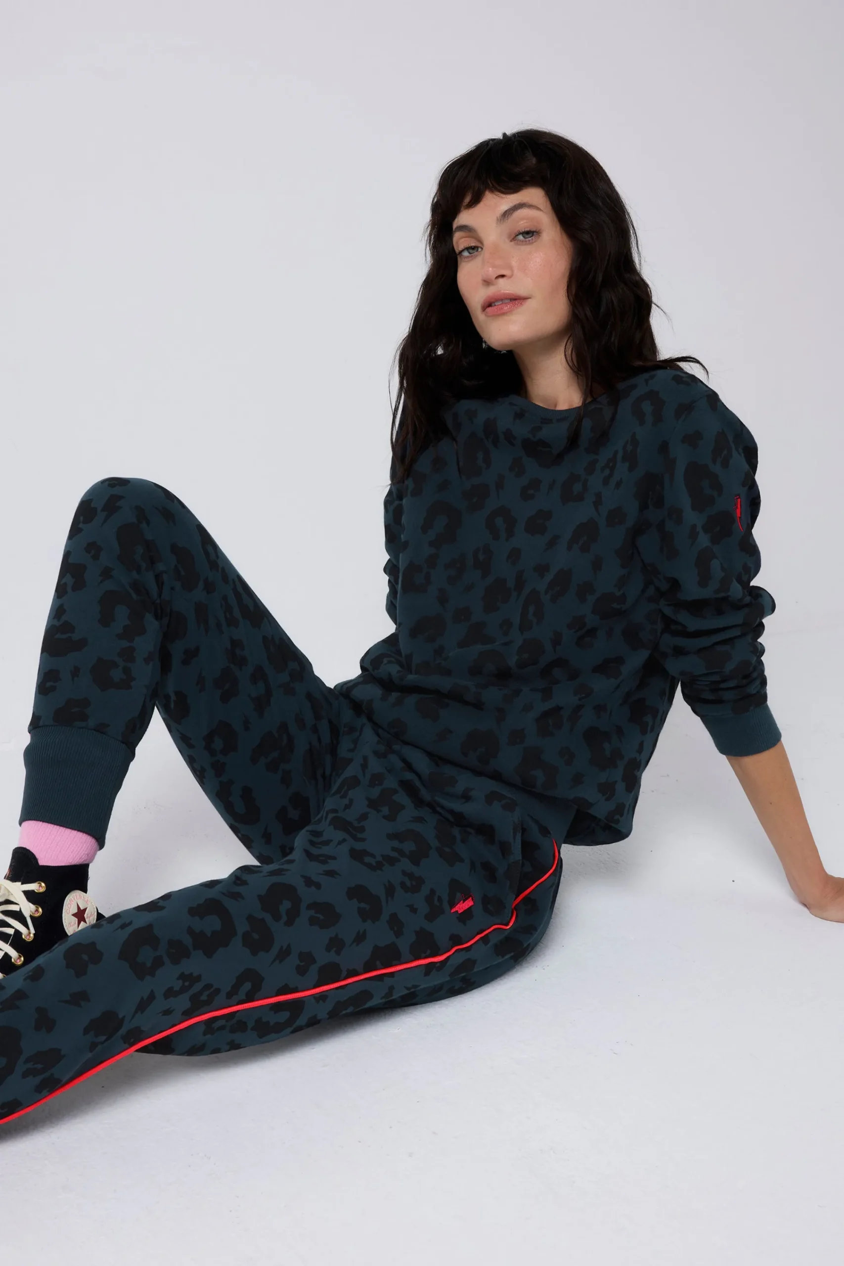 Our navy with black leopard super soft cosy joggers deliver a perfect blend of comfort and style. Team them with the matching sweatshirt and a pair of trainers to run errands on the weekend.