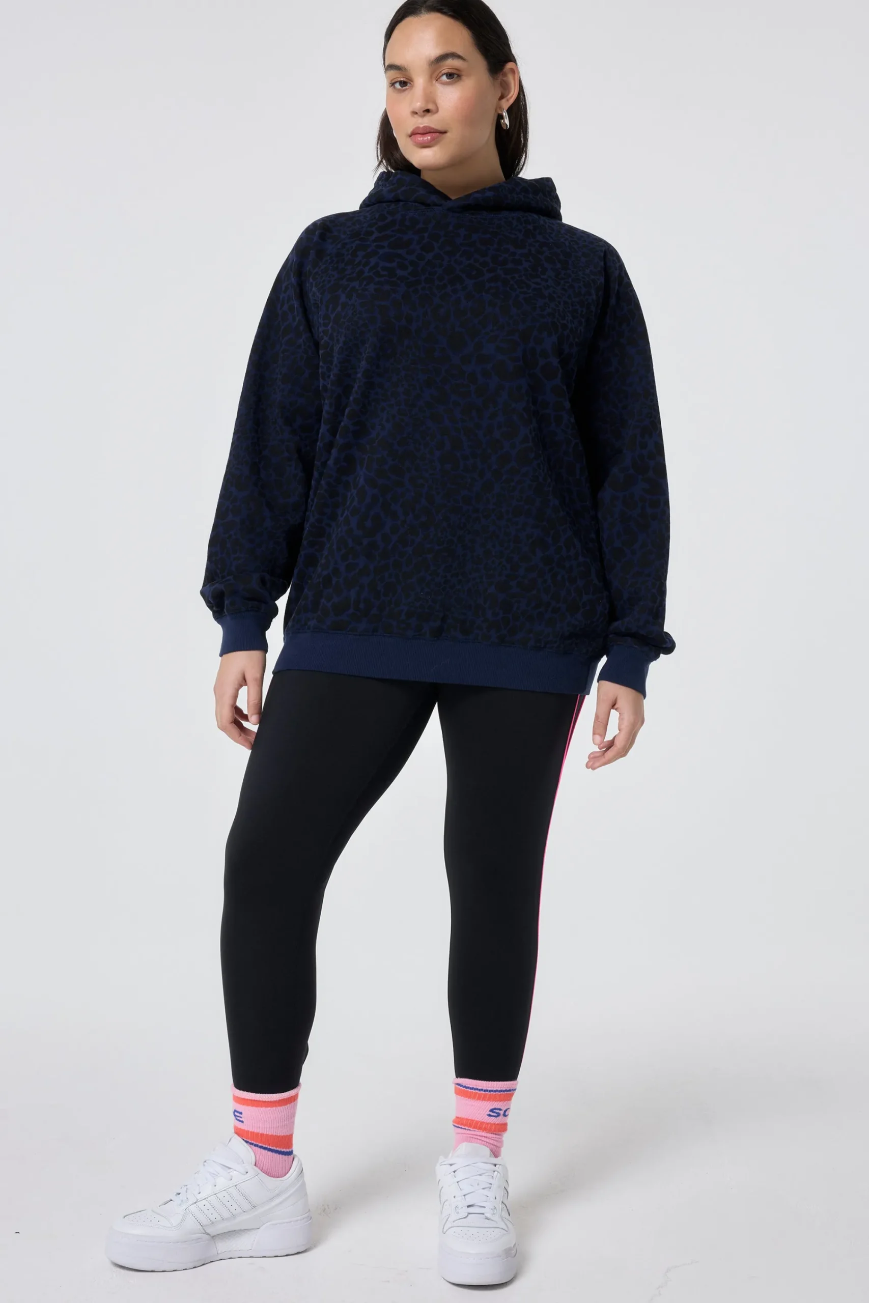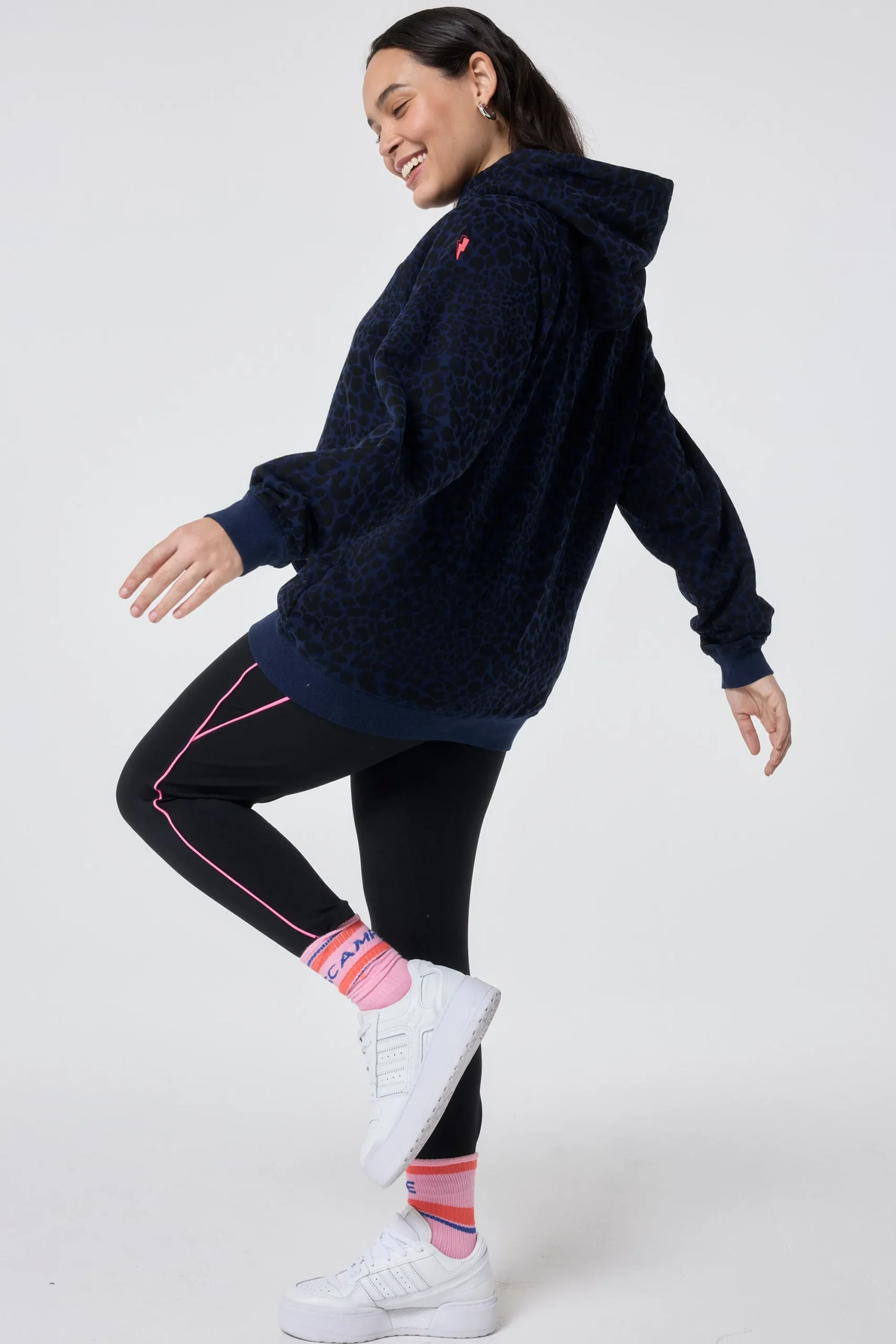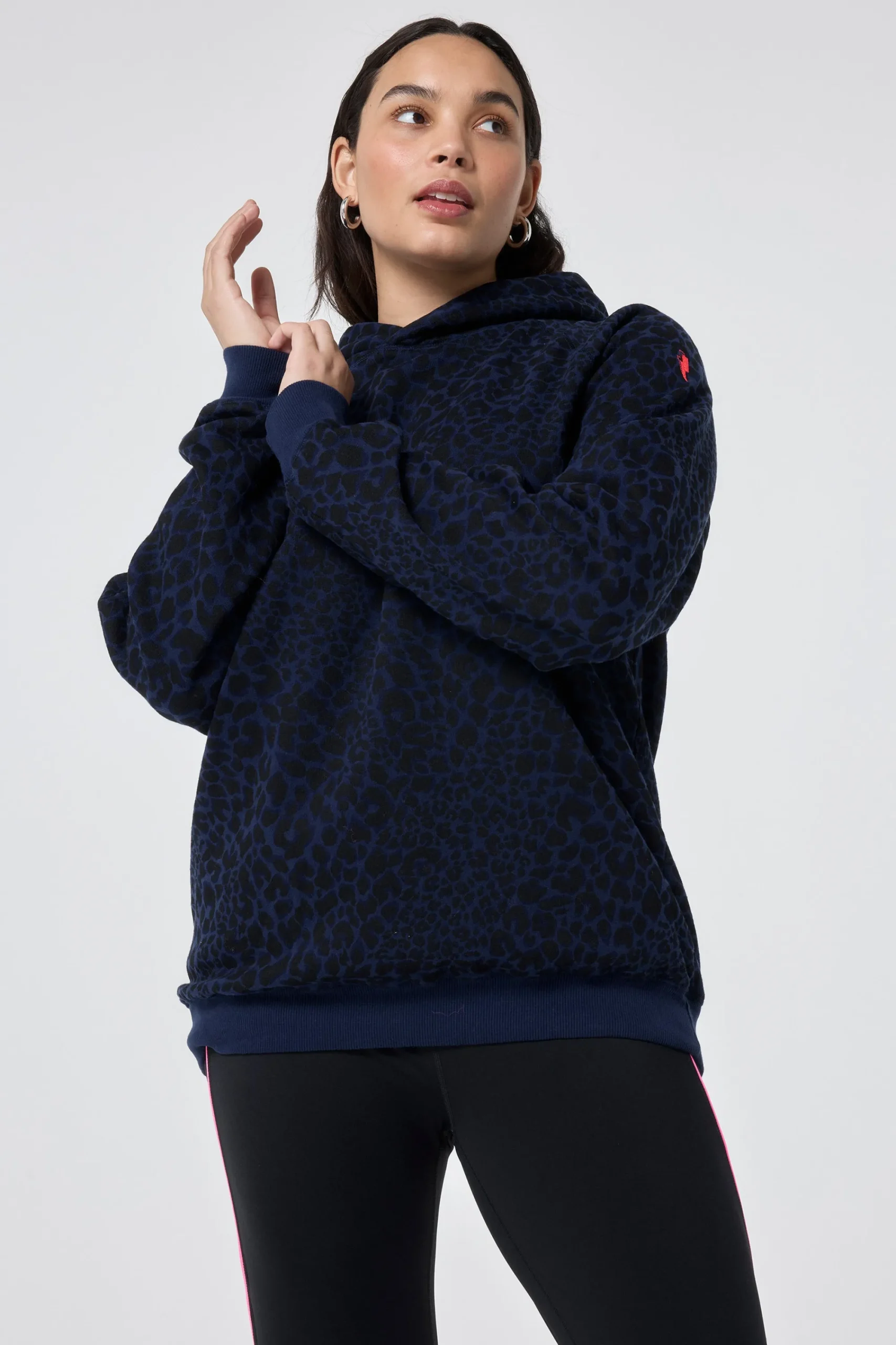 Say hello to our new navy with black rock and roll leopard hoodie. Keeping things casual with a relaxed fit and snuggly sizeable hood, it’s made from 100% organic cotton which provides a super soft feel and is an easy daytime option.
