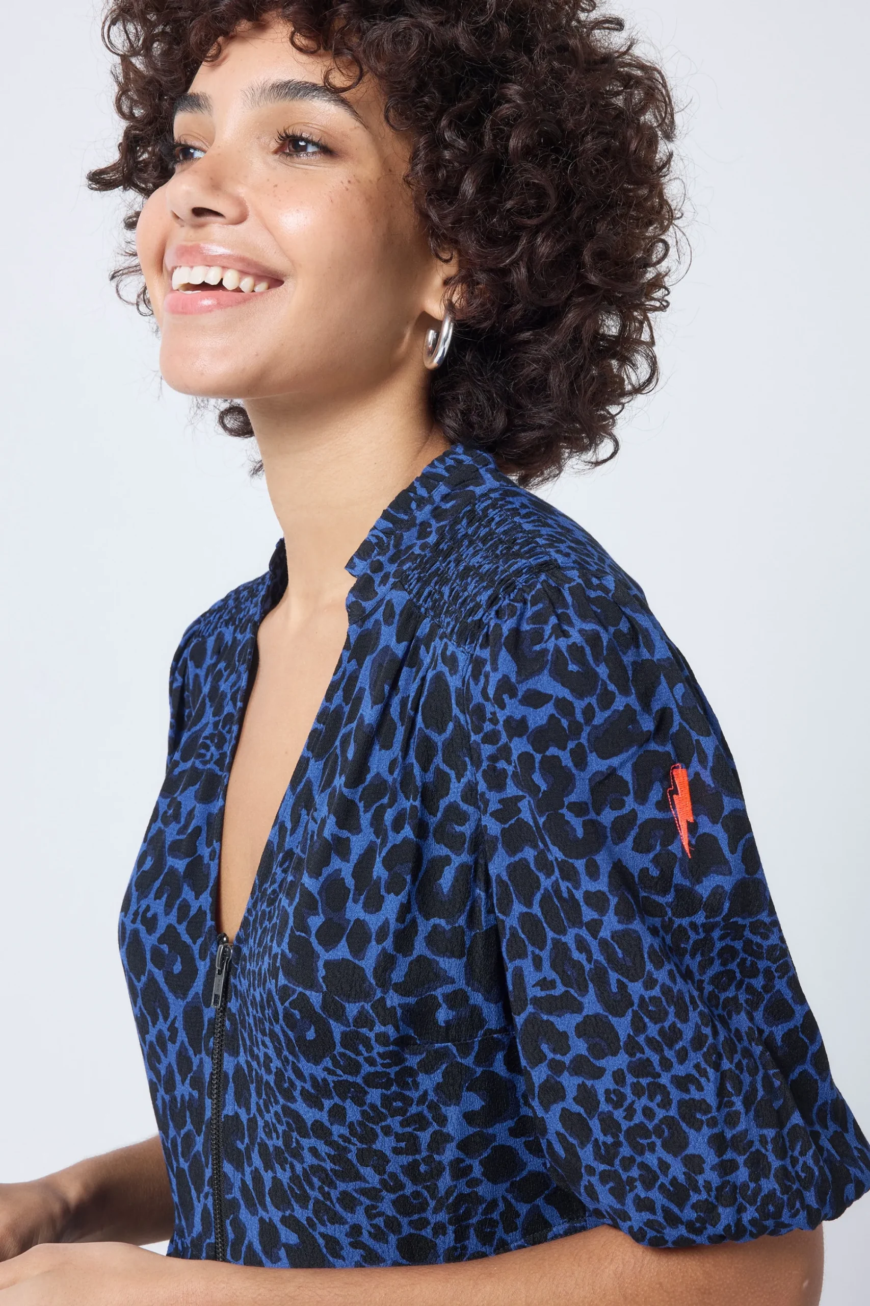 - Short blouson sleeves with elasticated cuffs