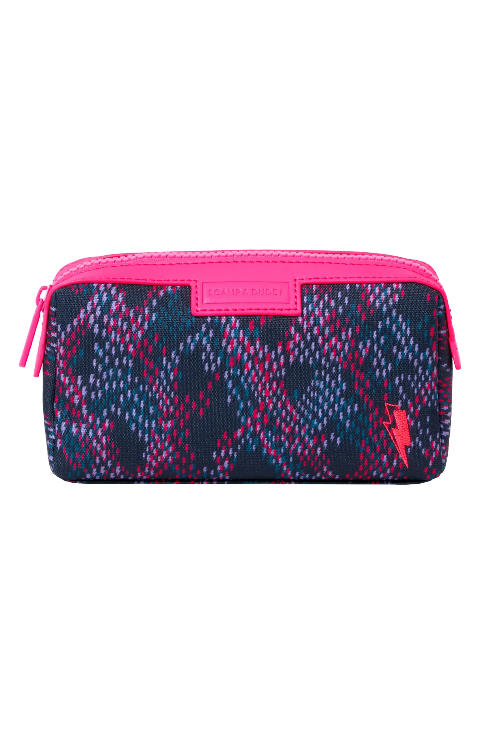 - Small Cosmetic Bag Navy with Pink and Lilac Lightning Bolt Snake Print