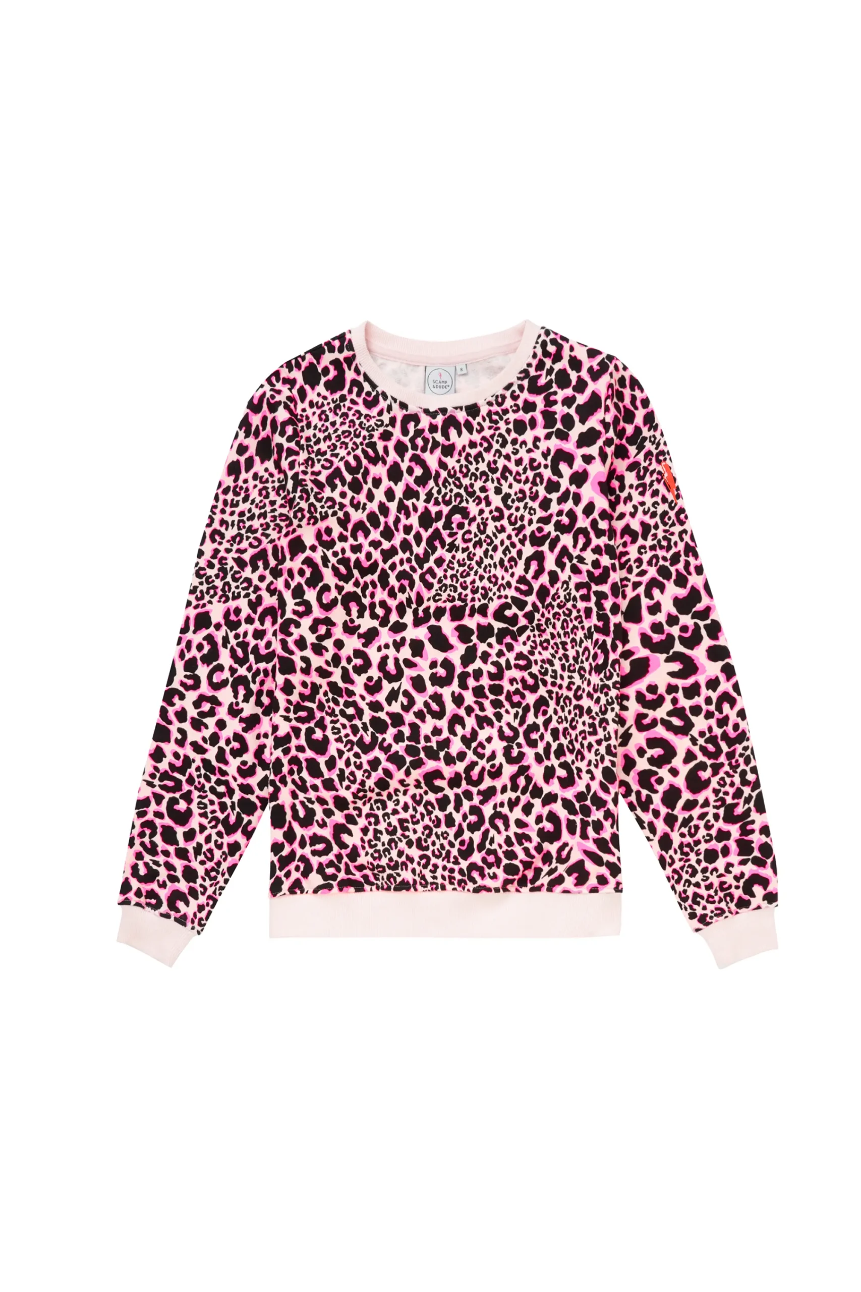 Amp up your casual collection with this neutral with pink and black rock and roll leopard and lightning bolt print classic sweatshirt. The eye-catching design is bound to draw attention wherever you go.