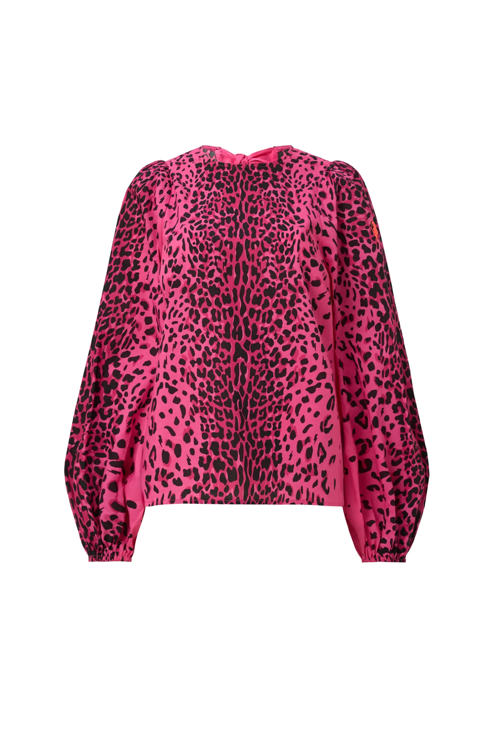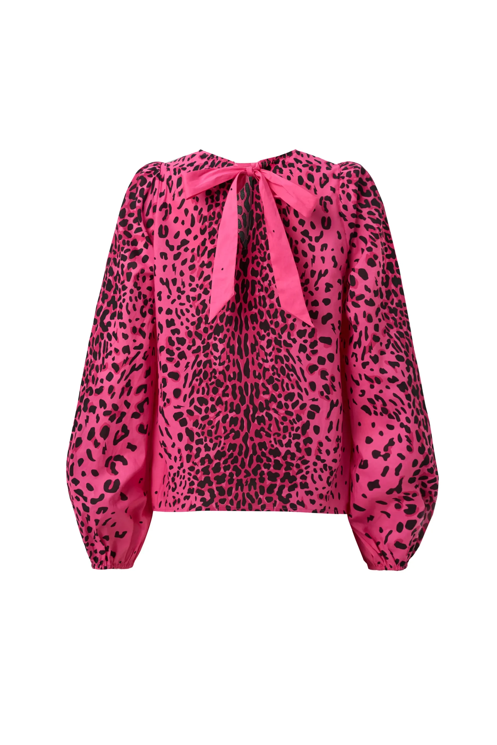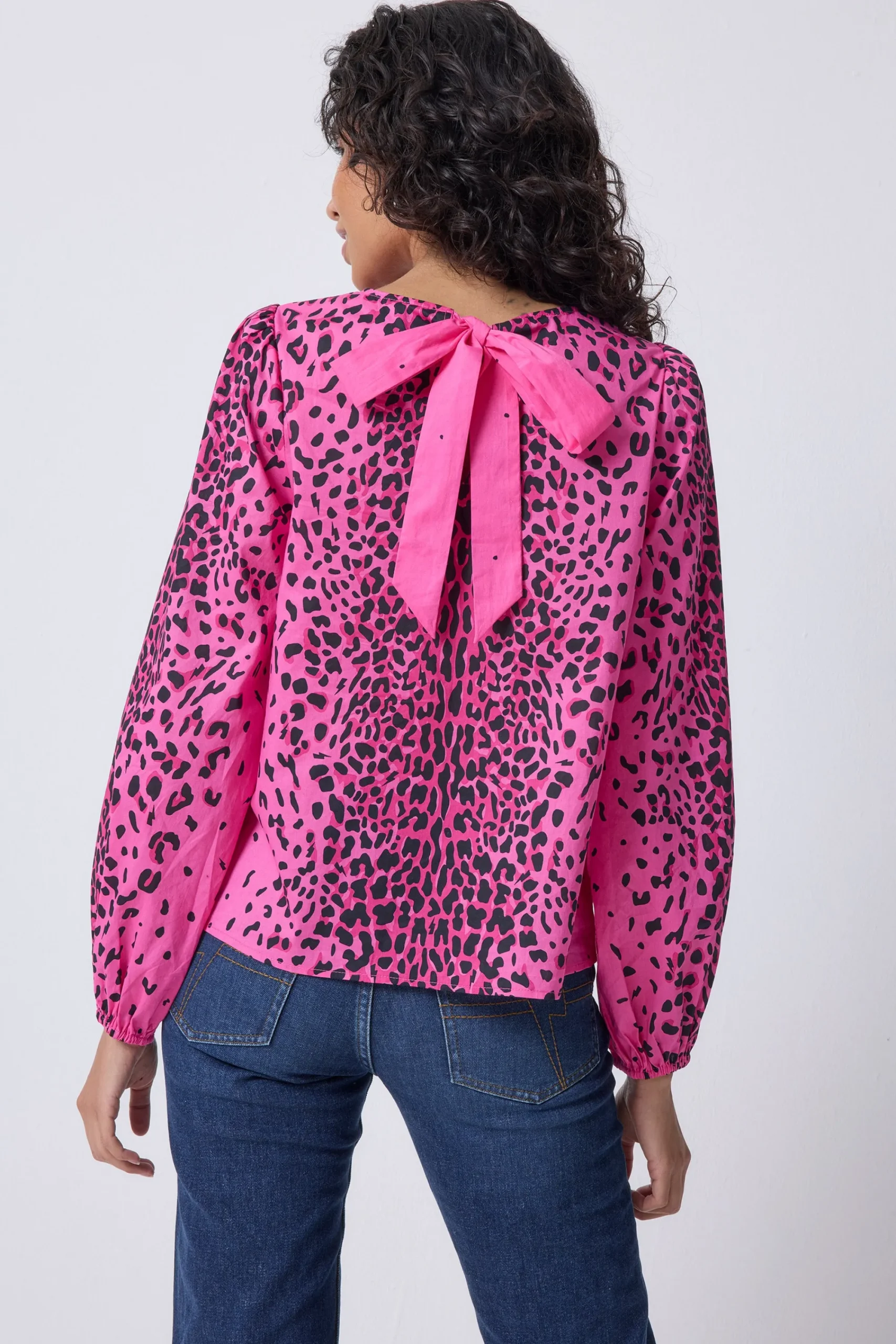 Our pink with black wild leopard blouse is made from super soft cotton and has wild leopard engineered placement print. It comes with a statement tie at the back. It’s the ultimate in day to night versatility, wear it to easily nail the ‘jeans and a nice top’ look.