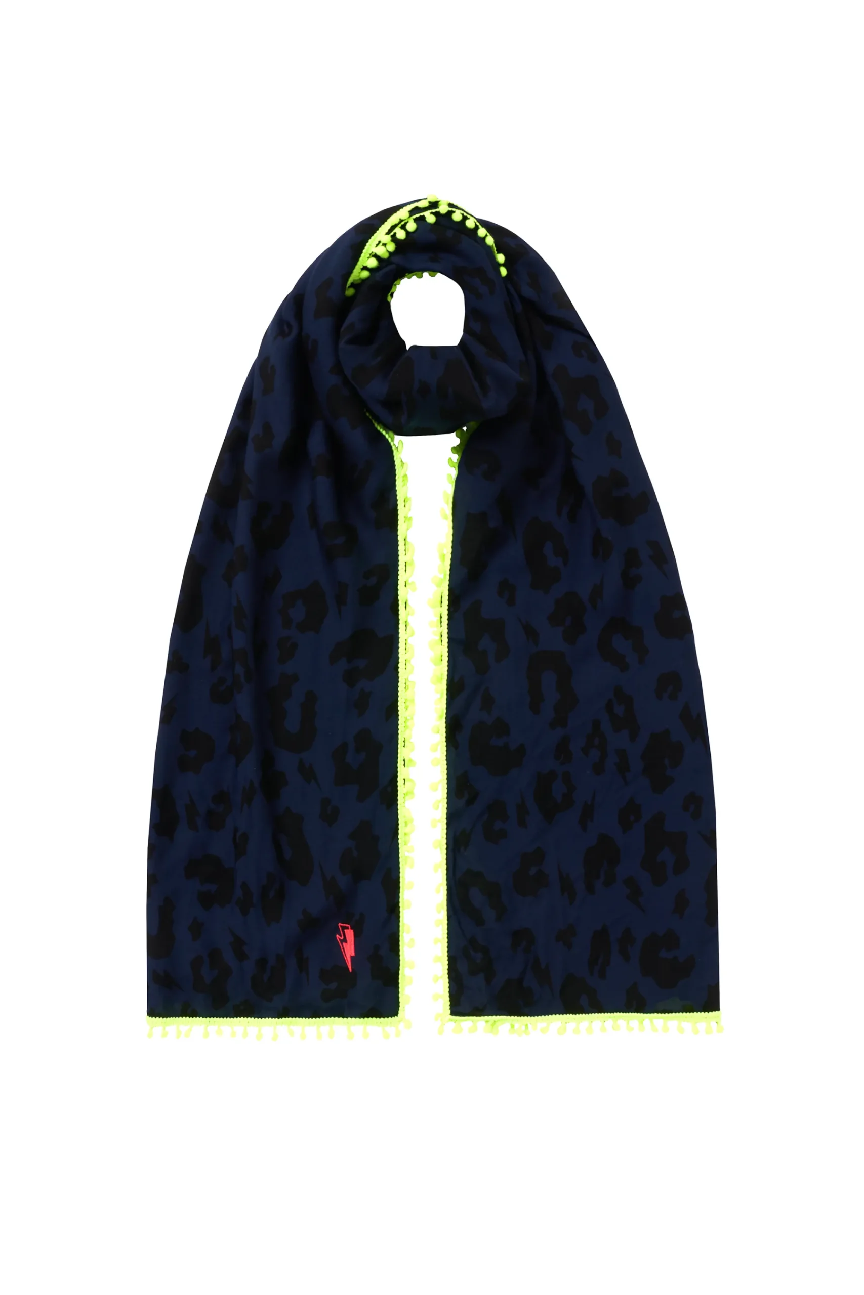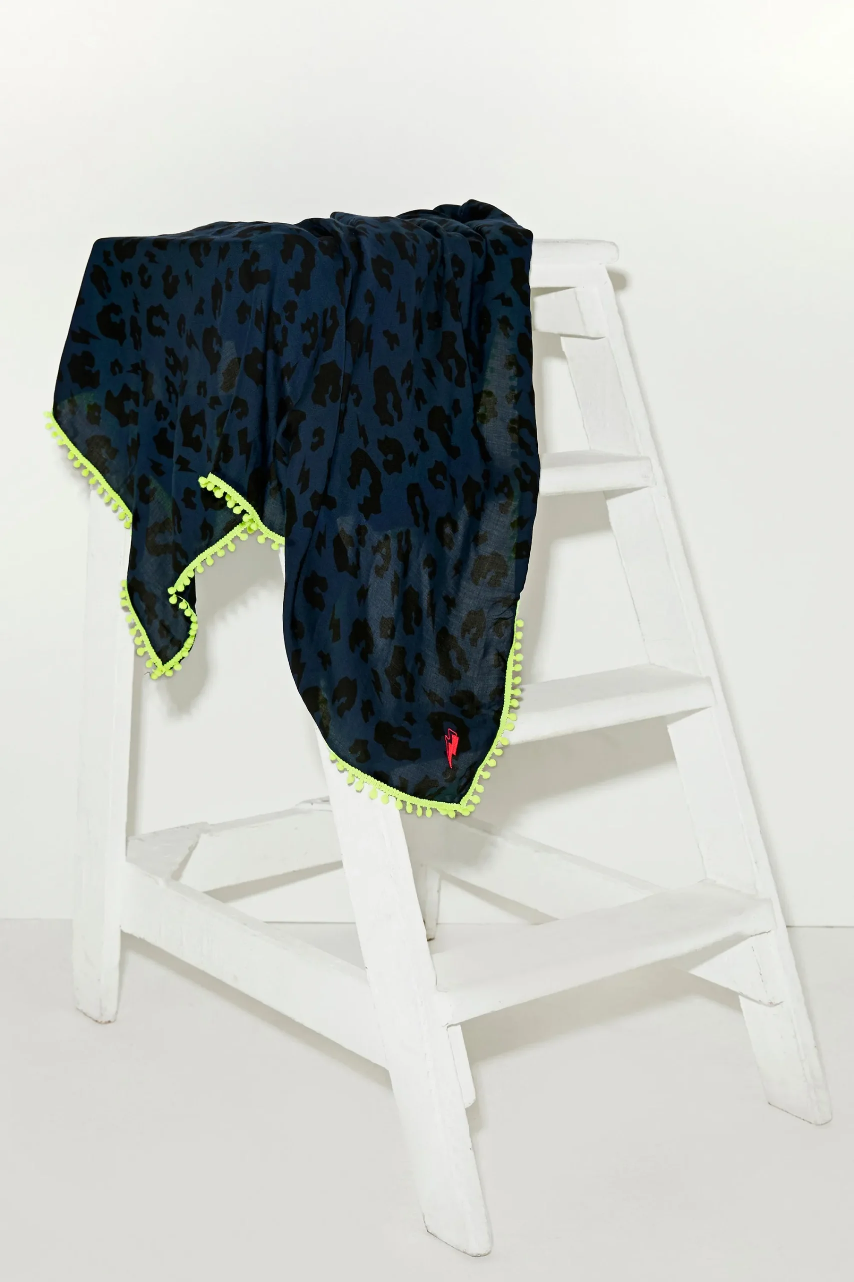 A super soft, superpower infused scarf in our navy with black leopard lightning bolt print. Featuring a neon yellow pom pom trim and neon pink embroidered lightning bolt. We’re honouring secondary breast cancer campaigner Nicky Newman’s memory and her inspiring message to ‘go grab life’. Designed by our founder Jo and Nicky Newman’s husband Alex. Let’s make Nicky proud and spread the superpowers she brought to the world.