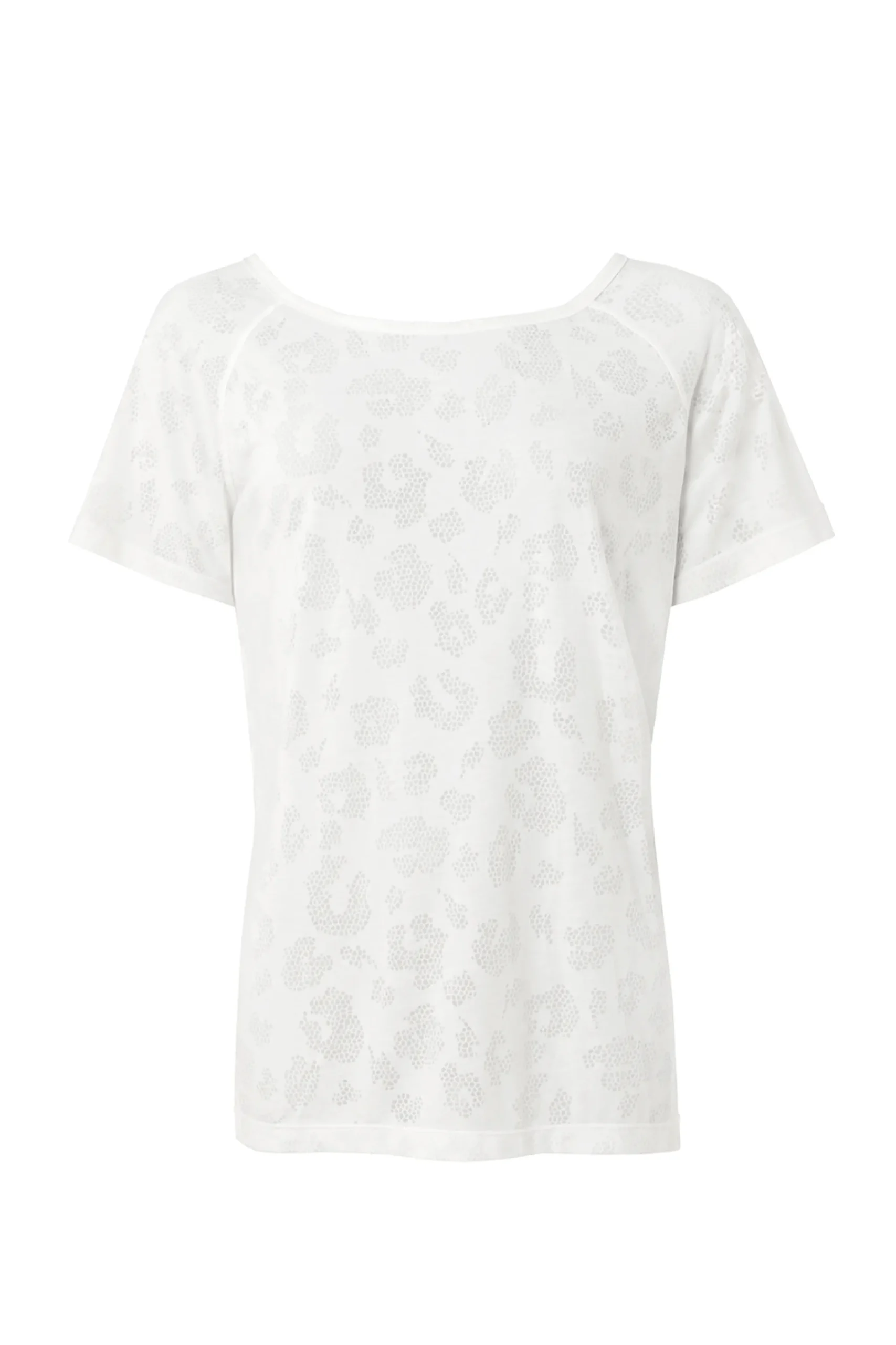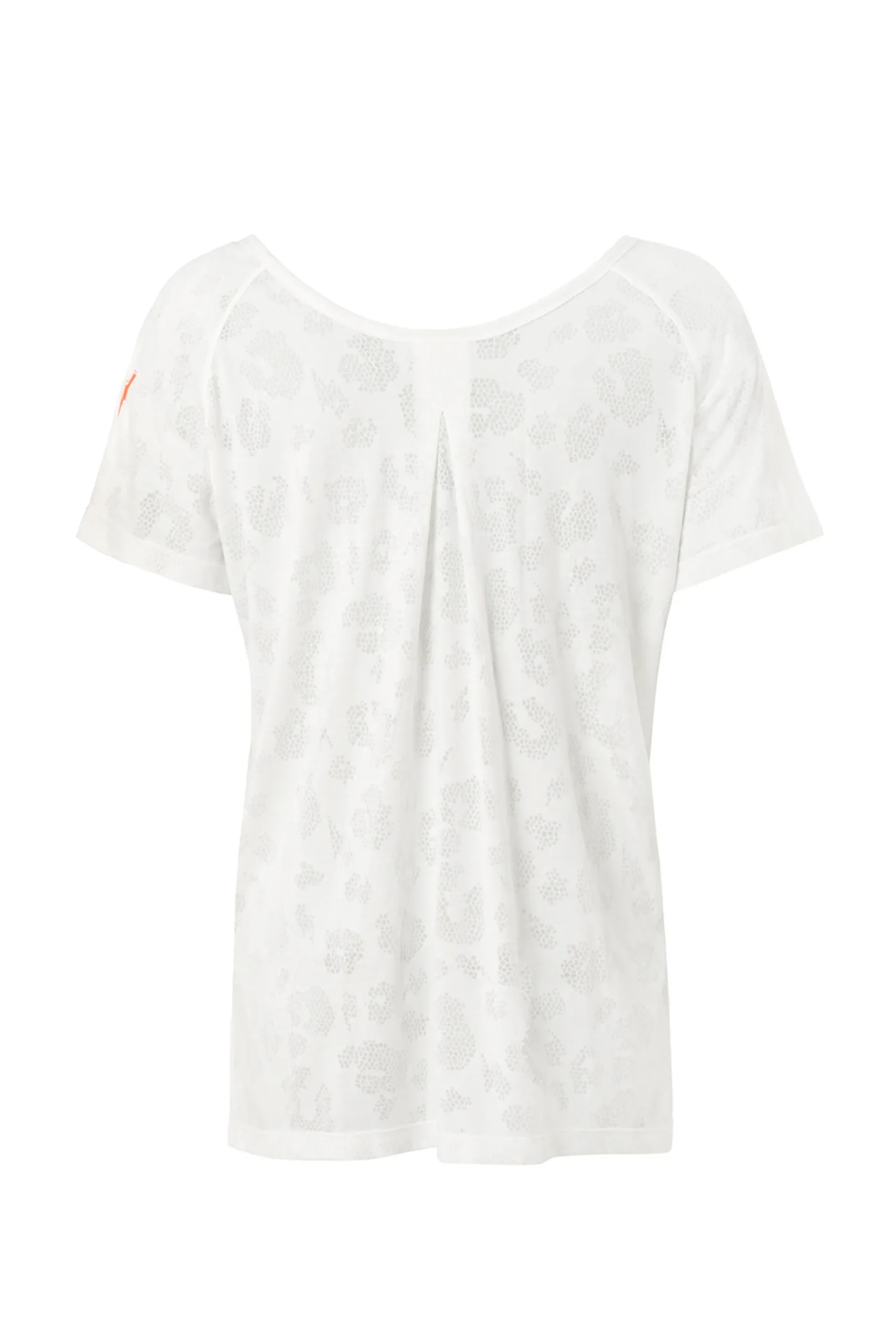 Kickstart your workout wardrobe with our white slouchy tee. Made from lightweight fabric with a burnout leopard and lightning bolt design, the oversized fit is great for layering over our active vest. Whether you’re sweating your way through spin class or just getting your steps in, this essential T-shirt is all about keeping you comfy and feeling your (personal) best.